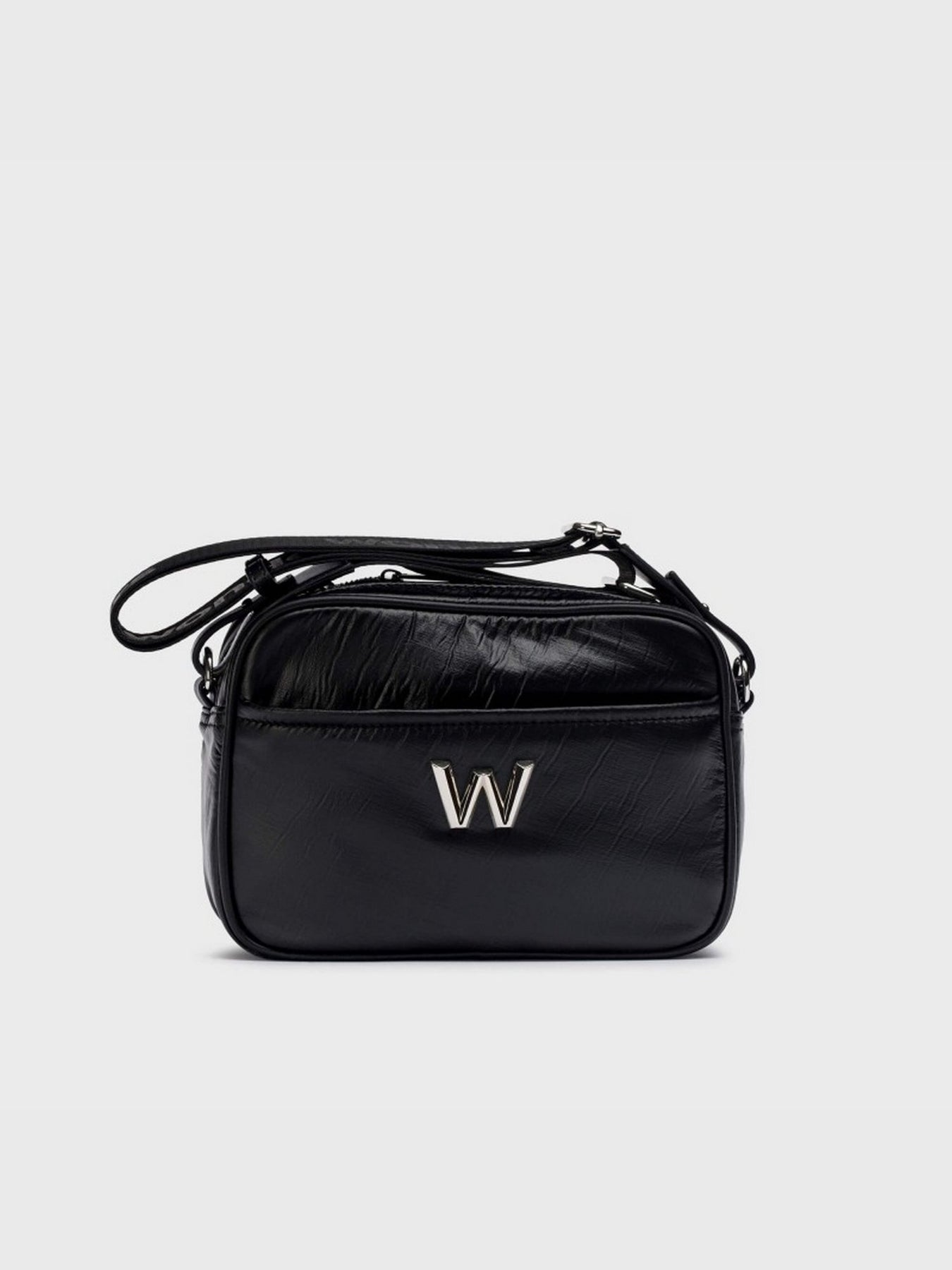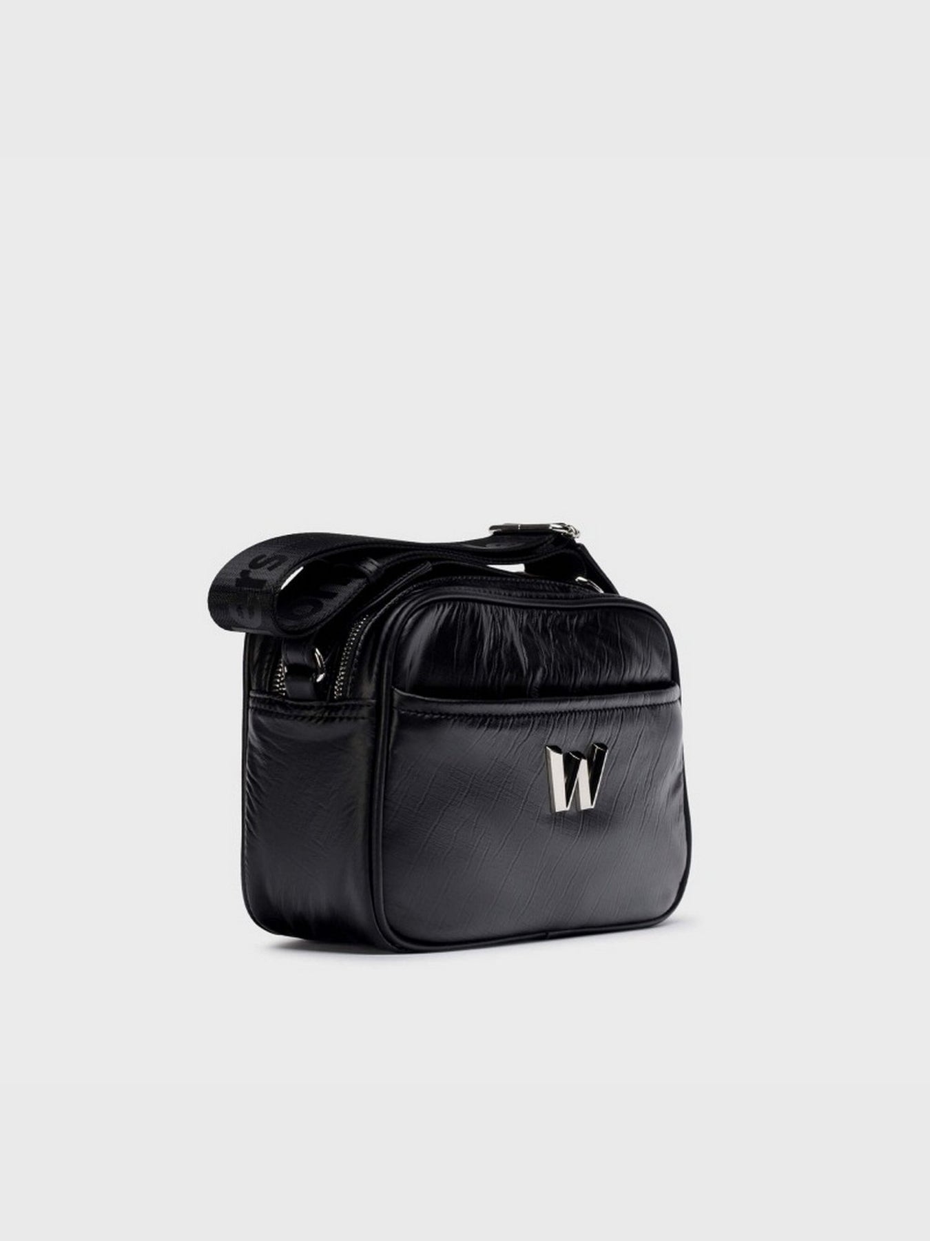 Realizzata con finitura nera metallizzata, presenta profili tono su tono e un raffinato logo metallico “W” sul davanti. Pratica e funzionale, è dotata di una tasca anteriore e una posteriore, oltre a due scomparti centrali, tutti chiusi con zip per una maggiore sicurezza.