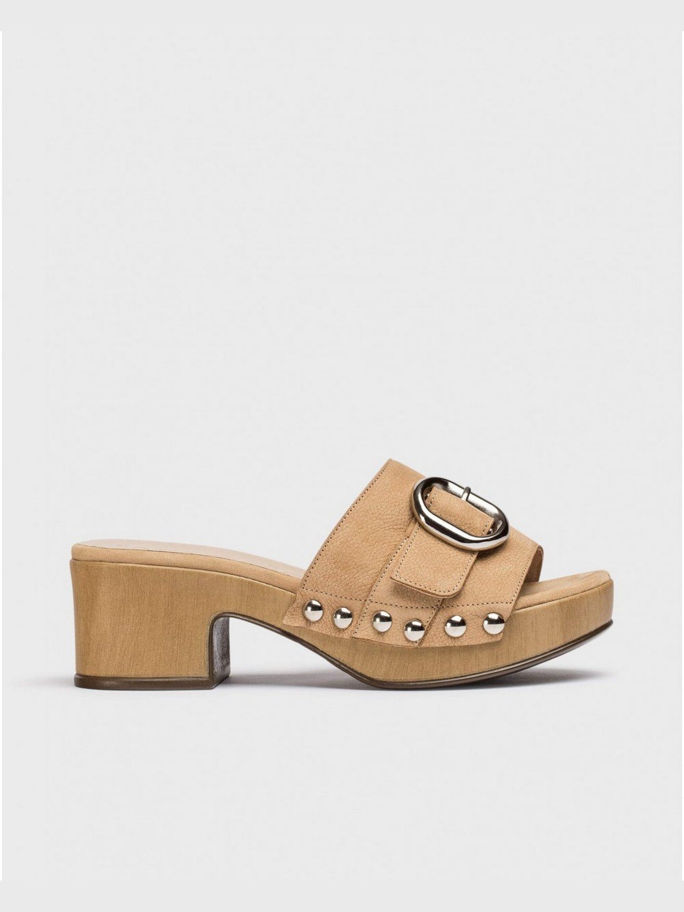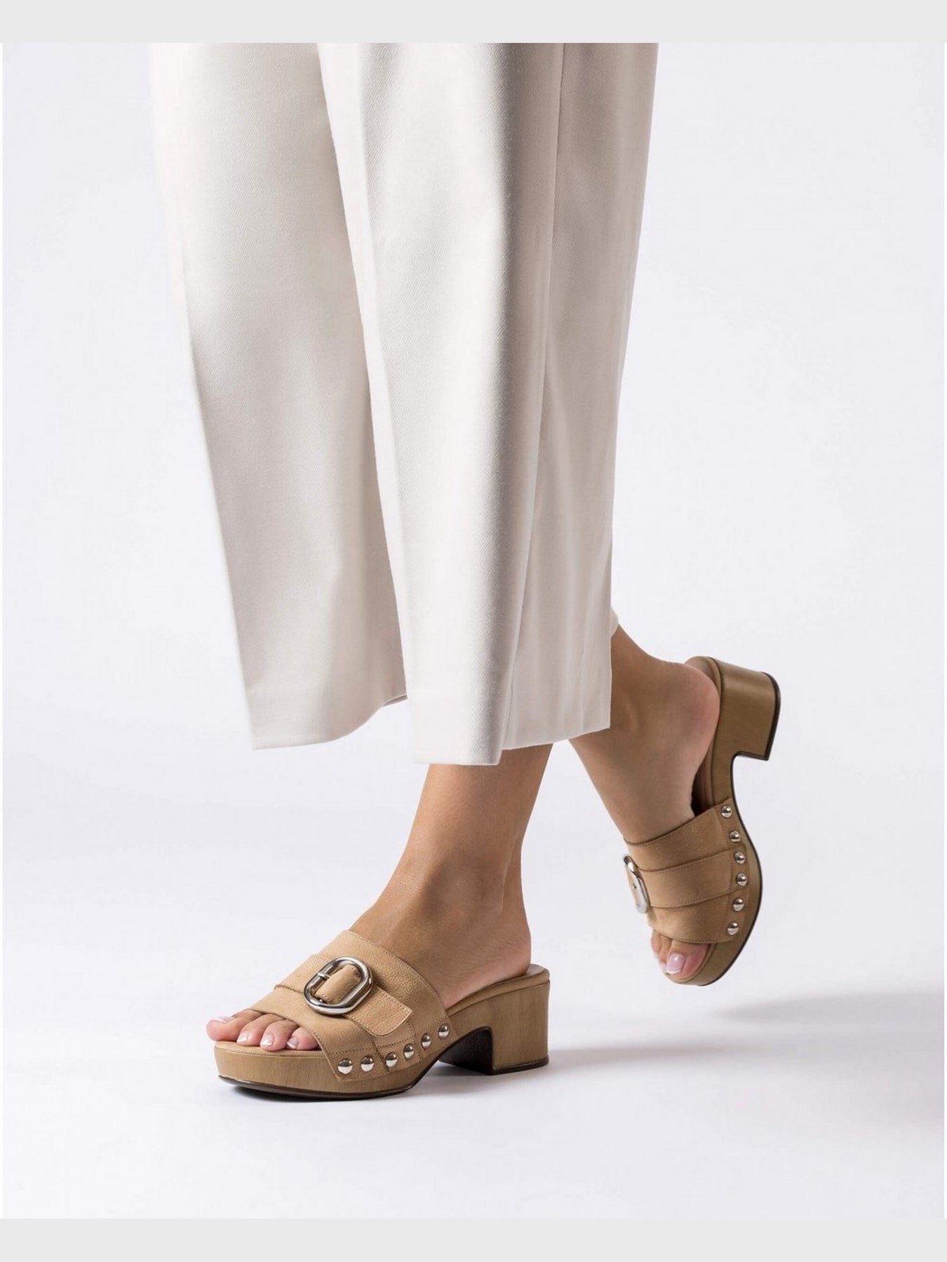 Il WONDERS Sandalo Basso Donna modello D-8852-P in Sand è un sandalo con tacco elegante e sofisticato, perfetto per chi cerca stile e comfort. Realizzato in pelle nabuk marrone, questo sandalo presenta una fibba metallica sulla tomaia e borchie decorative che aggiungono un tocco di raffinatezza al design. L'ampio tacco a blocco effetto legno non solo offre un look moderno, ma garantisce anche una stabilità eccellente durante la camminata.
