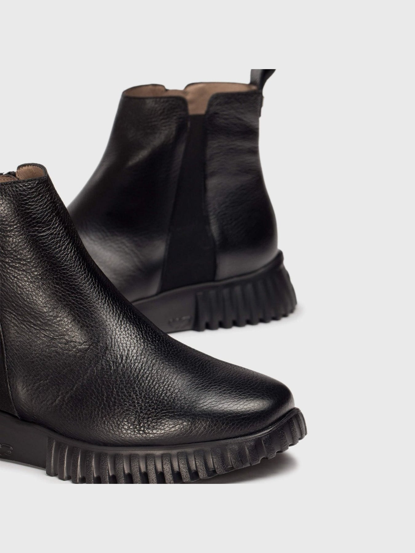 WONDERS Tronchetto Con Zeppa Donna - A-4404 Nero Tronchetto donna in pelle nera con elastici laterali, suola dentellata in gomma e zeppa leggera.