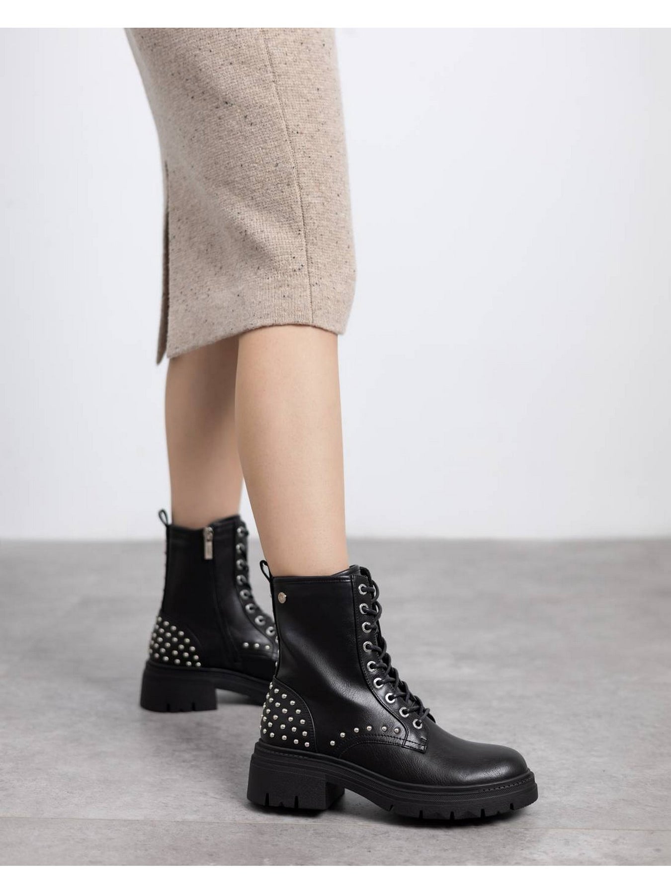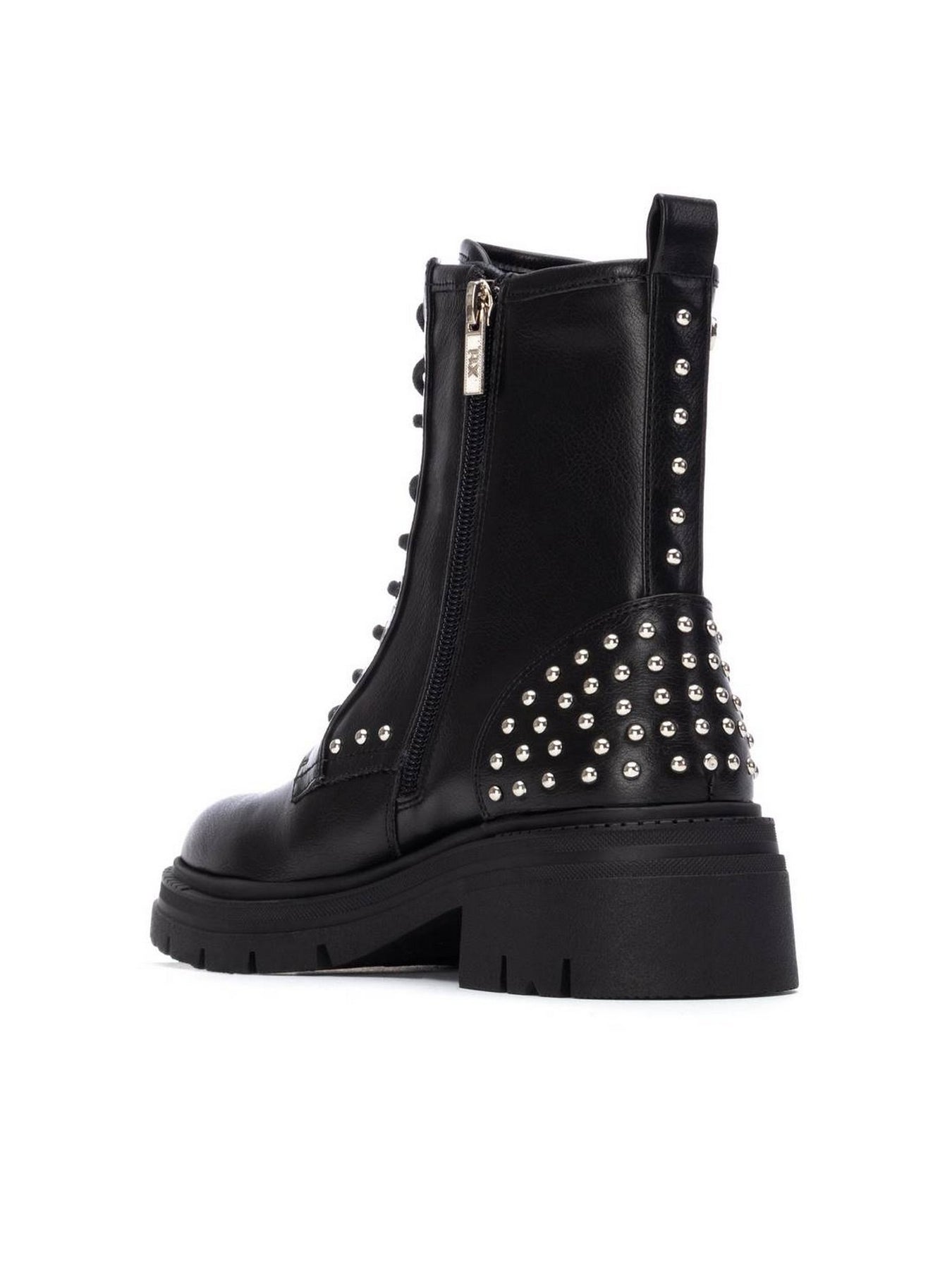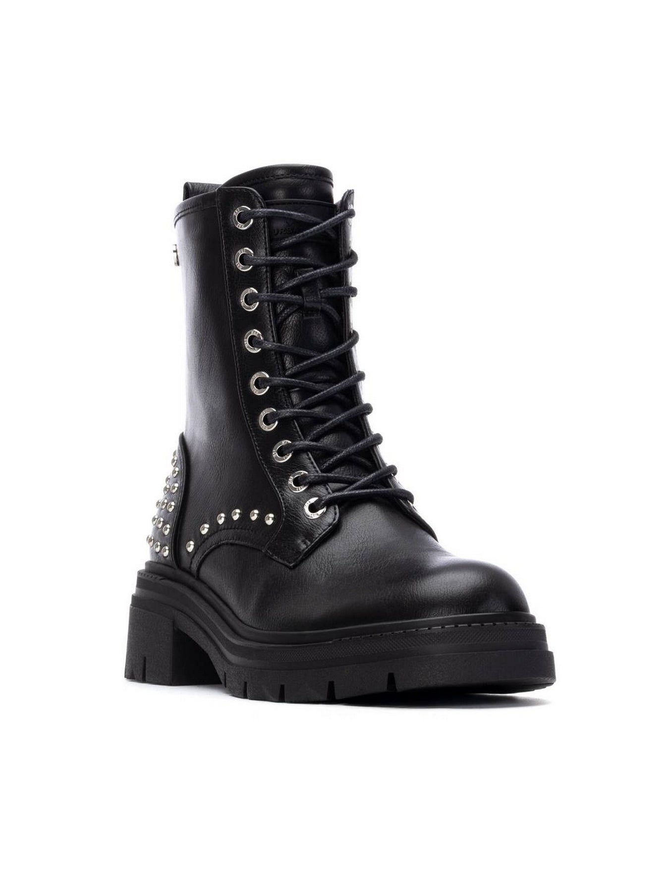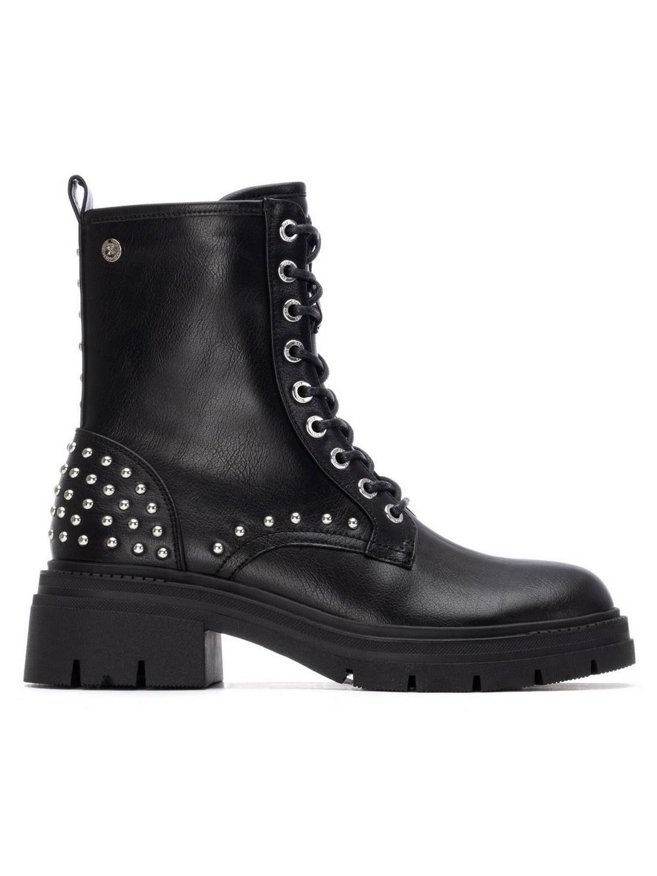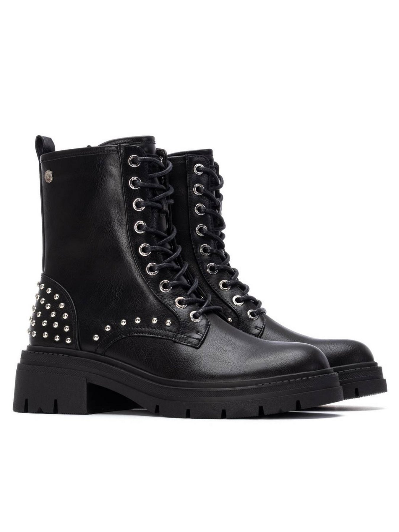 XTI Anfibi Donna - 144640 Nero Anfibi donna in similpelle nera con allacciatura frontale, borchie decorative e suola carrarmato.