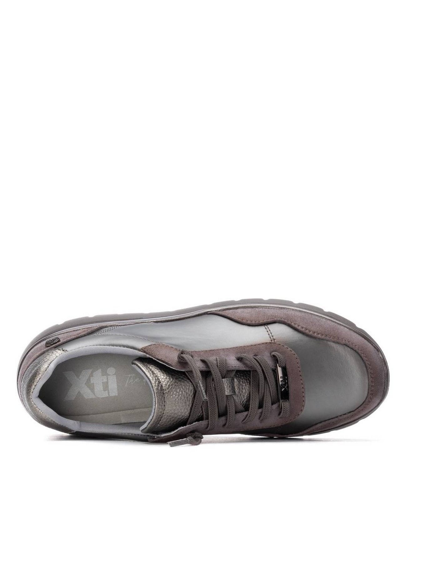 La XTI 144652 Argento è una sneaker da donna dal design moderno e luminoso, realizzata in ecopelle con inserti in tessuto e dettagli metallizzati che la rendono originale e alla moda.