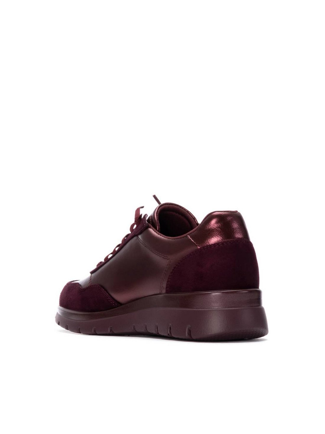 La suola flessibile e leggera assicura comfort durante tutta la giornata, rendendola ideale per look casual e sporty chic. La tonalità bordeaux, intensa e di tendenza, aggiunge un tocco originale e sofisticato a ogni outfit.