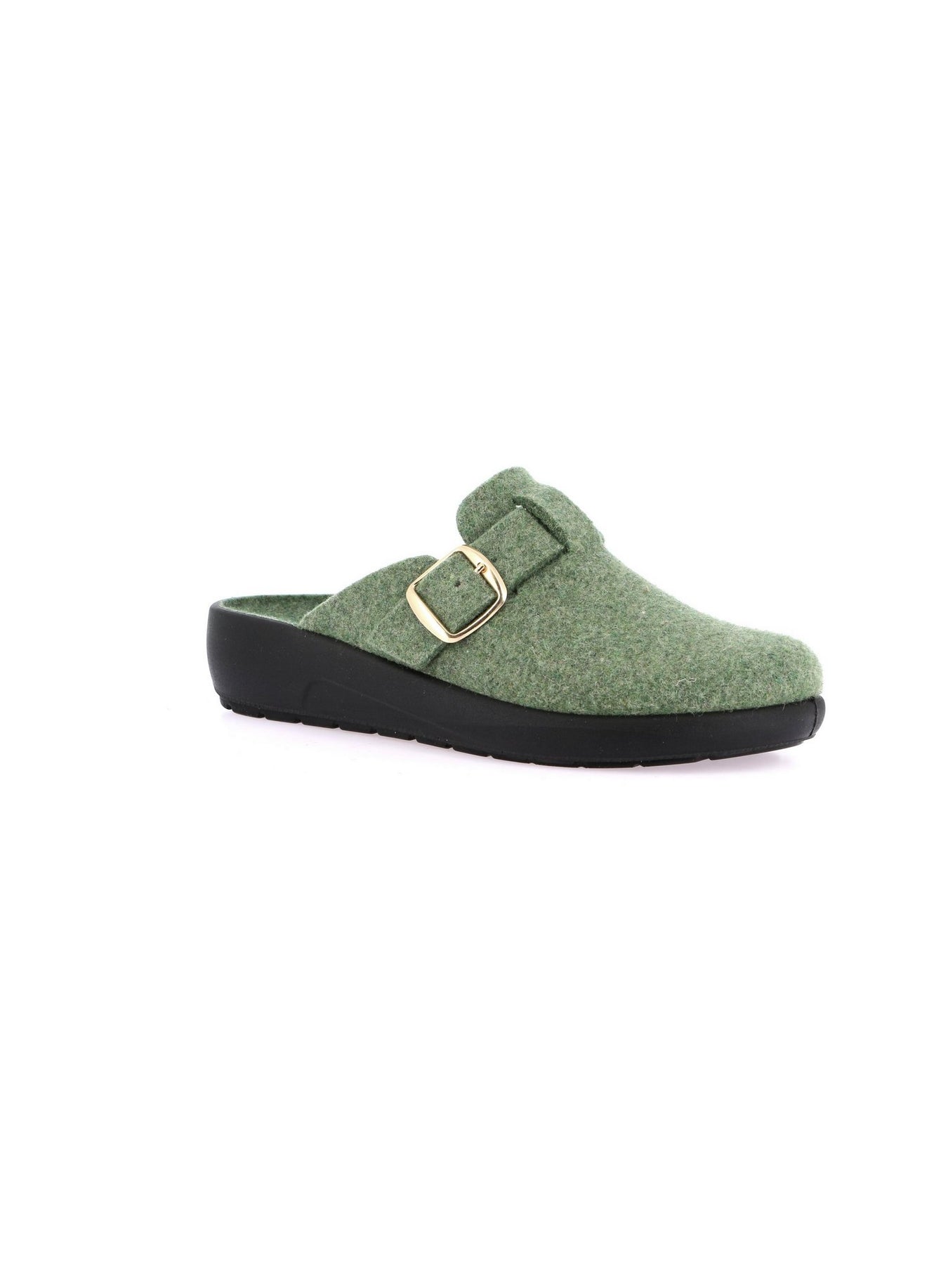GRUNLAND Ciabatta Donna - CI2961 Verde. Ciabatta da donna in feltro verde con fibbia regolabile e suola leggera.