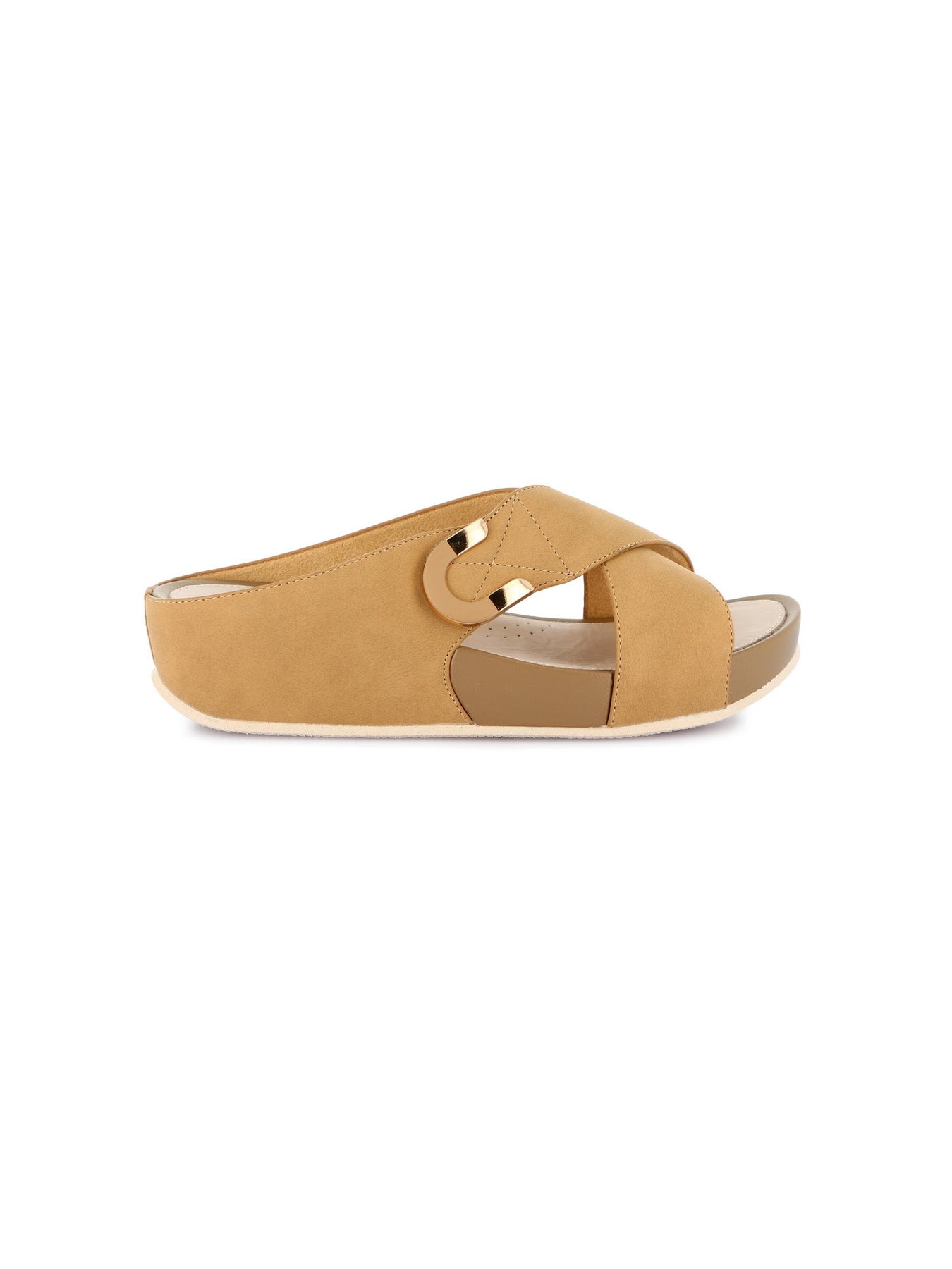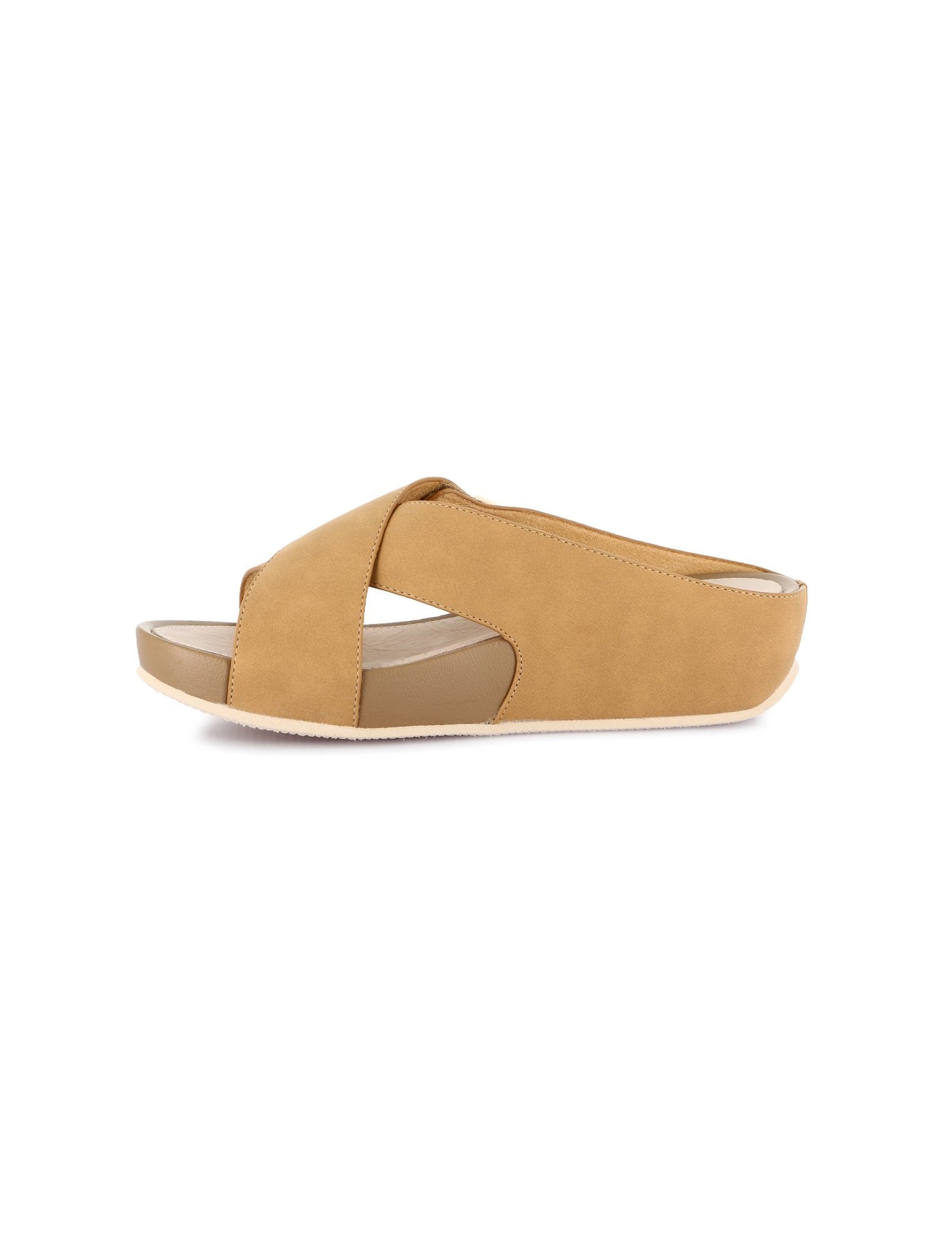 Tomaia Esterna: realizzata in materiale sintetico effetto pelle nella tonalità cuoio con fascia incrociata e chiusura a strappo, progettata per offrire resistenza, praticità e uno stile moderno