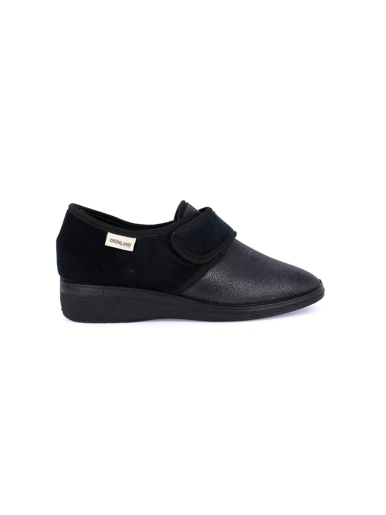 La pantofola GRUNLAND PA0598 offre una calzata pratica e regolabile grazie alla chiusura a strappo, ideale per piedi che necessitano di comfort e facilità d'uso. Realizzata in materiale elasticizzato che si adatta delicatamente alla forma del piede, presenta una fodera e una soletta fissa in feltro per calore e morbidezza.