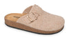 Realizzata in feltro morbido e traspirante, garantisce calore e benessere al piede. Il cinturino con fibbia metallica regolabile consente di adattare facilmente la calzata, assicurando stabilità e comfort personalizzato.