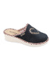 Realizzata in morbido tessuto effetto velluto nei toni del beige, questa pantofola presenta un delicato dettaglio a cuore con profilo animalier, che aggiunge femminilità e stile. Il bordo con finitura leopardata dona un tocco moderno e distintivo, mentre la zeppa di circa 4 cm offre un leggero rialzo che assicura postura naturale e massimo comfort.