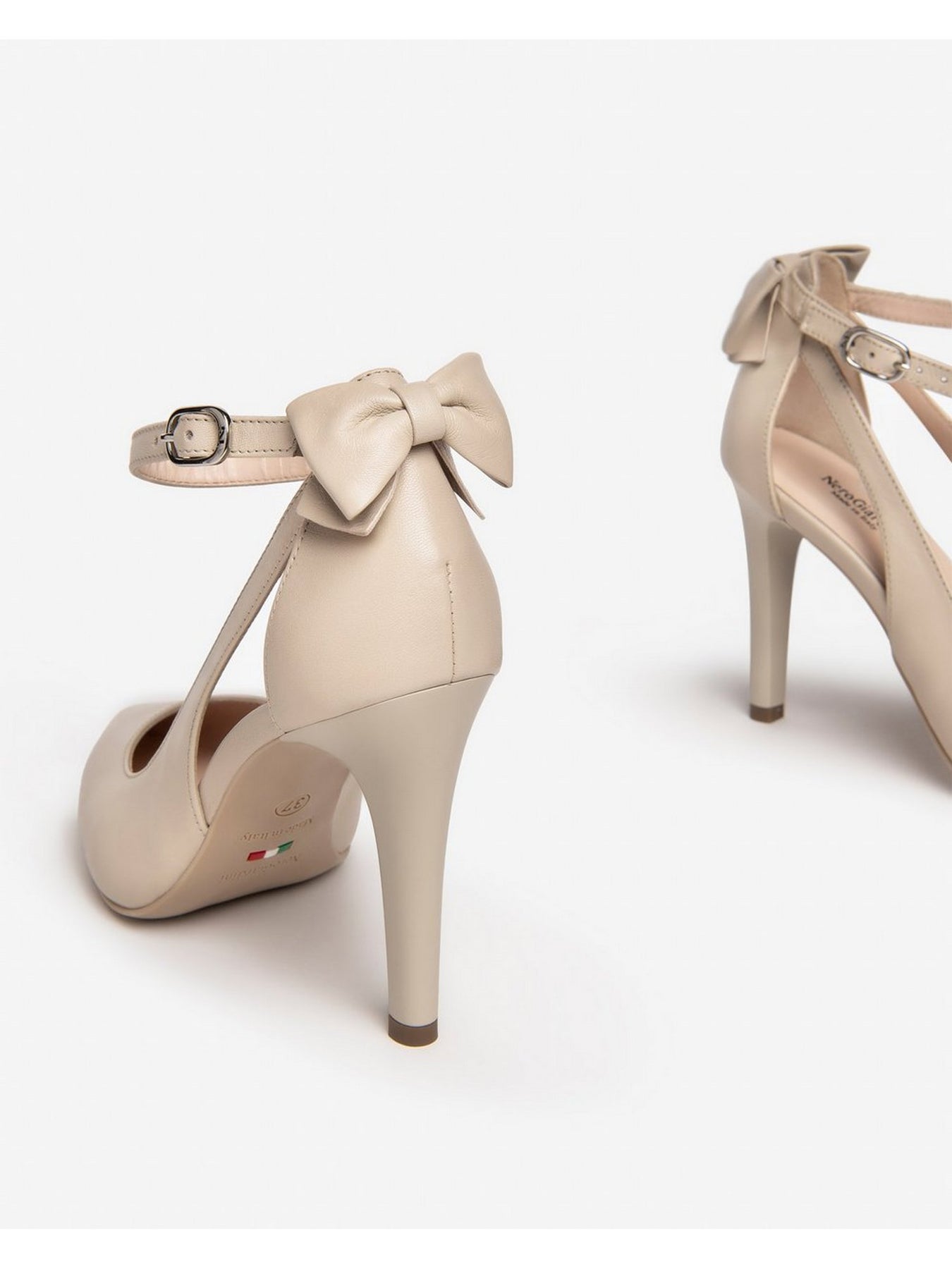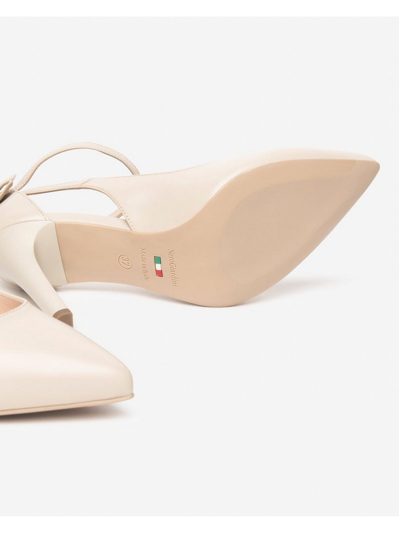 Il fondo in gomma garantisce resistenza e un'ottima aderenza, mentre la fibbia permette una chiusura sicura e regolabile per una vestibilità ottimale. Il colore Ivory, delicato e luminoso, si abbina facilmente a diversi outfit, rendendo questa decolleté ideale per occasioni speciali, eventi eleganti o serate raffinate.