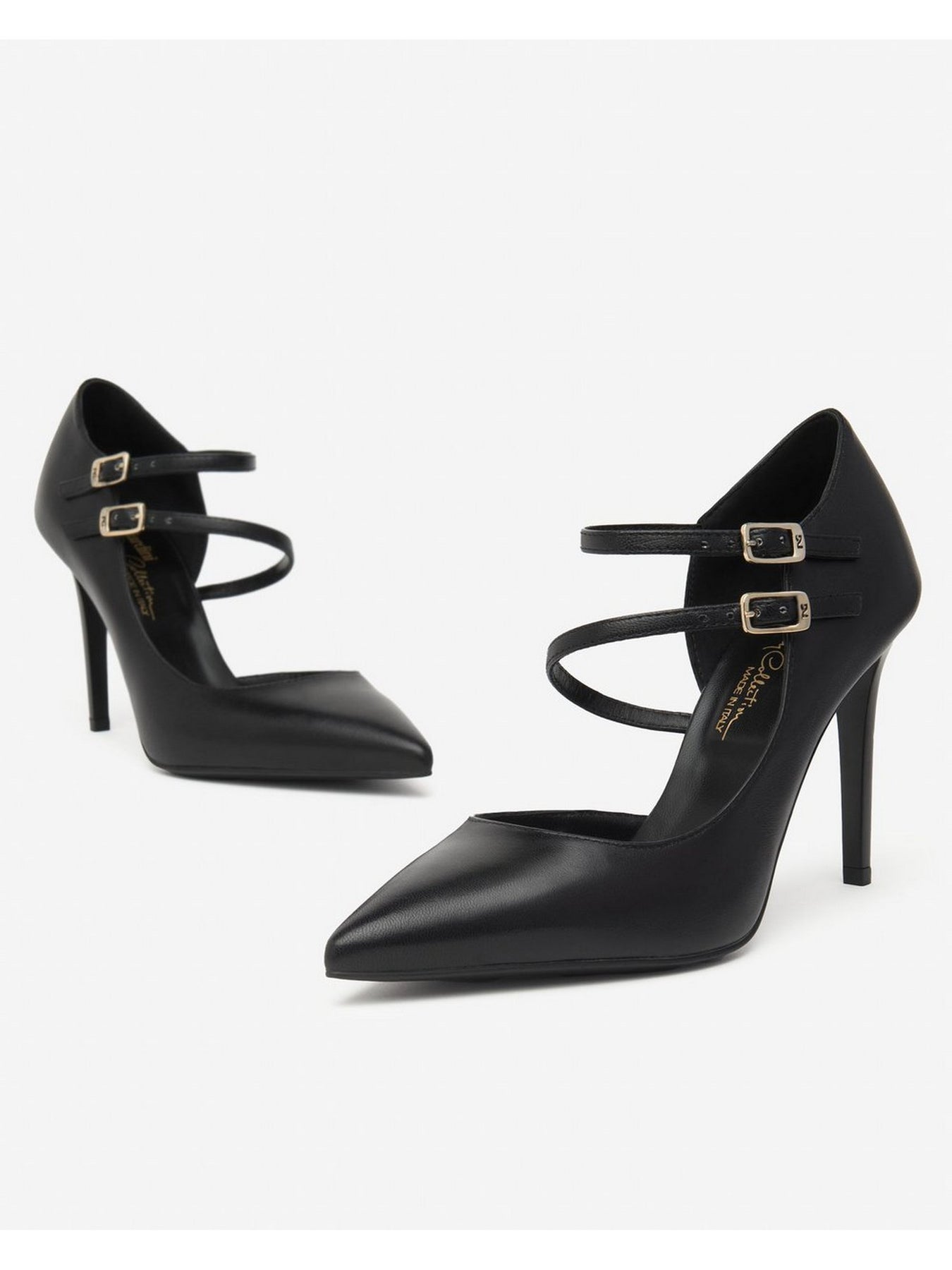 NERO GIARDINI Decolleté Tacco Alto Donna - I514420DE Nero Decolleté da donna in pelle nera con tacco a spillo da 9,5 cm e doppio cinturino, eleganti e Made in Italy.