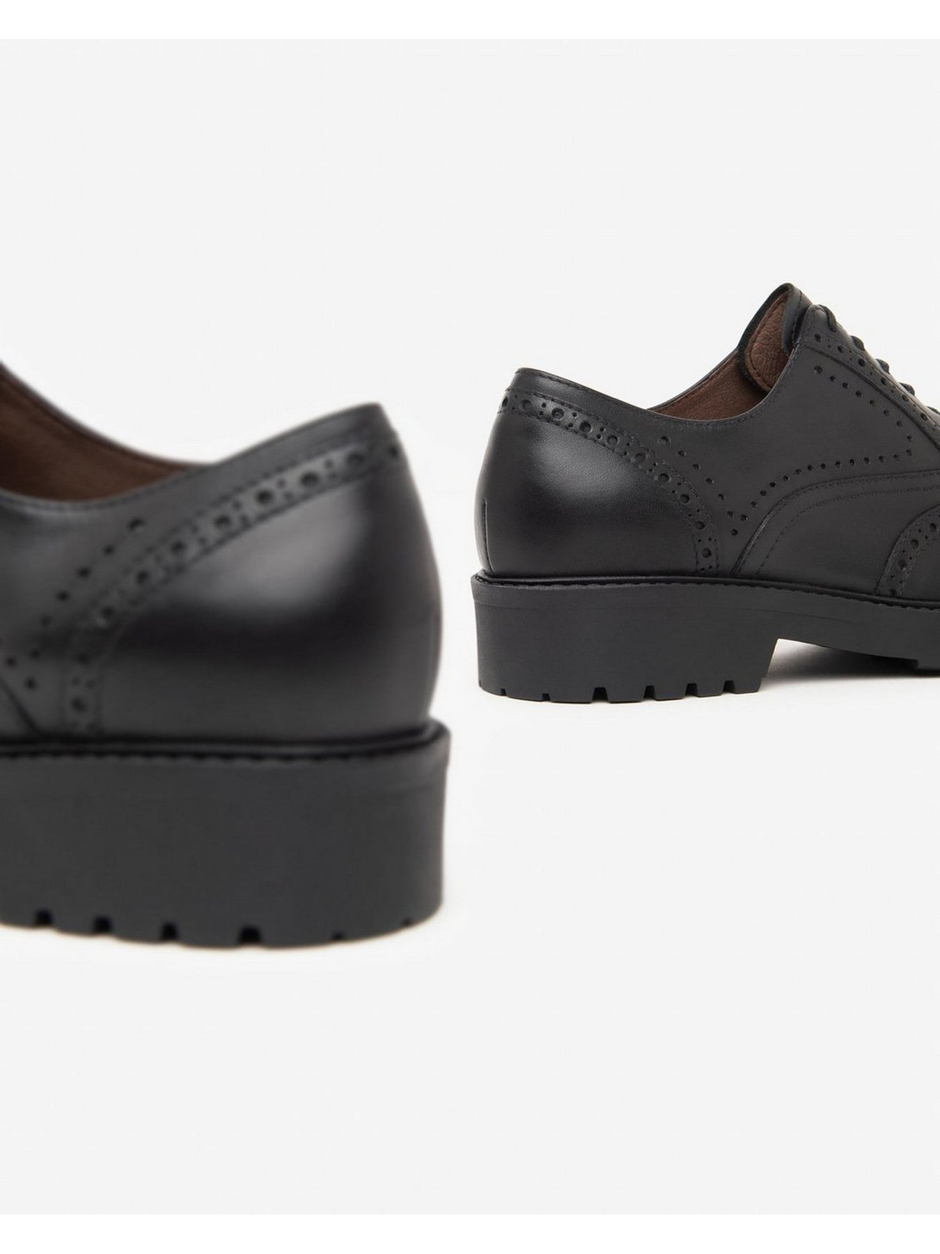 La suola in gomma assicura stabilità e grip, mentre il tacco a blocco da 3,5 cm dona sostegno e praticità senza rinunciare alla femminilità. La chiusura stringata classica completa il design sobrio e versatile.