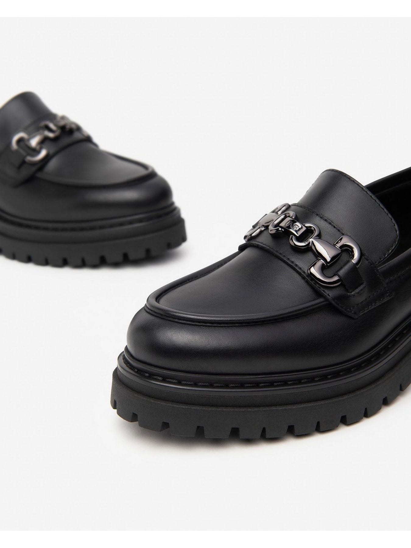 NERO GIARDINI Mocassino Tacco Medio Donna - I411410D Nero Mocassino da donna in pelle nera con accessorio metallico e tacco a blocco da 4 cm, Made in Italy.