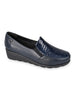 VALLE VERDE Mocassino Con Zeppa Donna - VS10301E Nero Mocassino da donna in pelle nera con inserto frontale in vernice effetto coccodrillo e zeppa comoda da 4,5 cm.