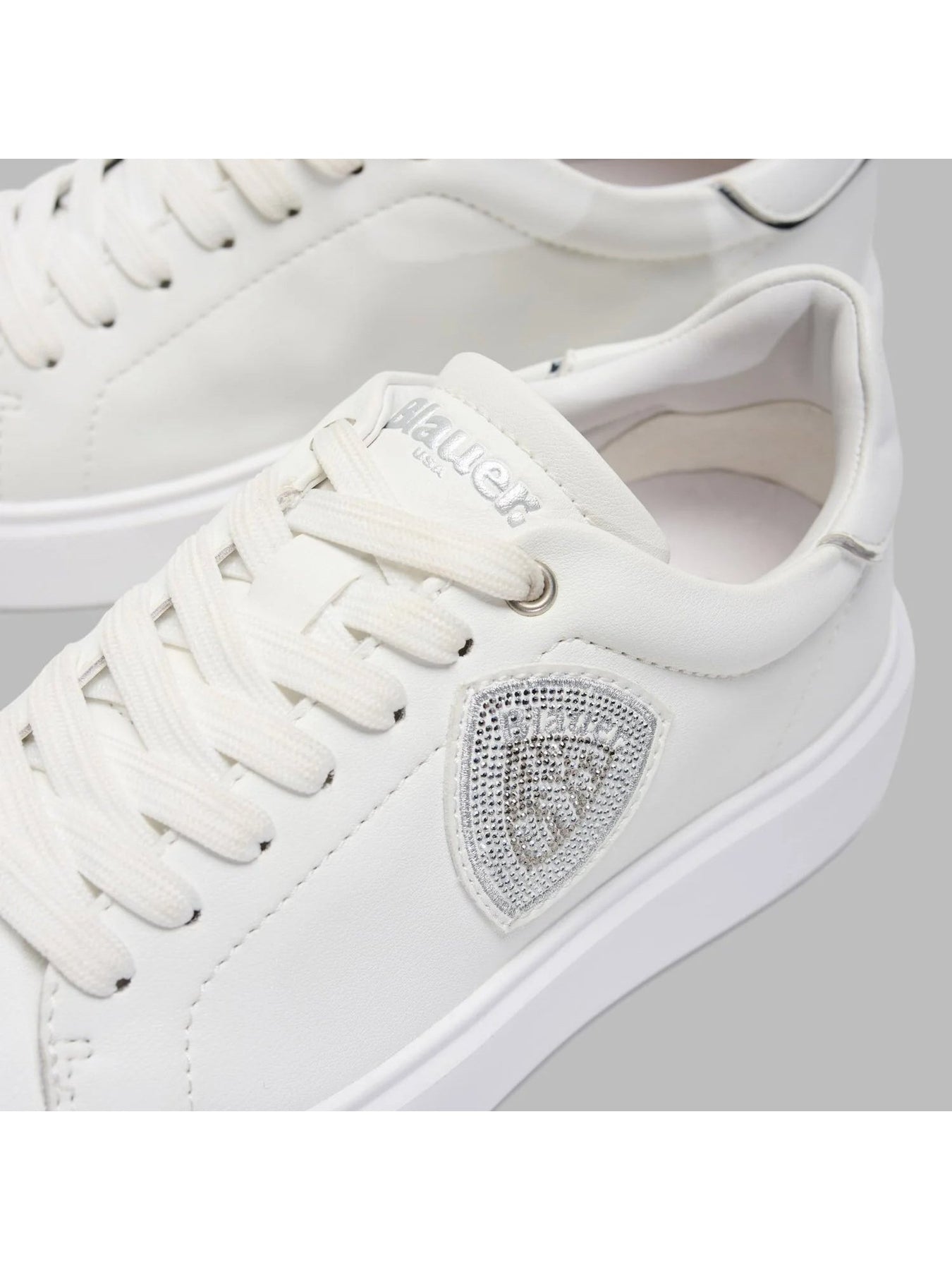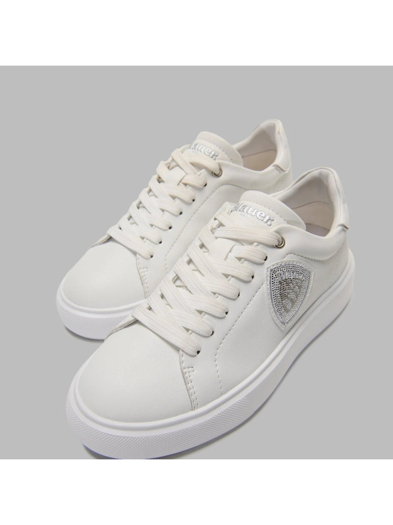 BLAUER Sneaker Bassa Donna - F5VENUS01 Bianco Sneaker da donna in pelle bianca con dettagli a cuore glitterato laterale e suola platform, trendy e versatile.