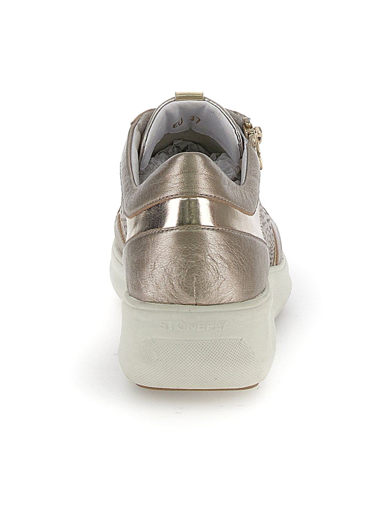La STONEFLY Rock 30 Sneaker Con Zeppa Donna 220776 Metal Fizz è progettata per offrire una camminata naturale e ammortizzata, assicurando comfort prolungato. La zeppa interna di circa 4 cm dona slancio alla silhouette senza compromettere la stabilità, mentre la tomaia traforata favorisce la traspirabilità e valorizza il design ricercato. Una sneaker donna con zeppa versatile e femminile, ideale per aggiungere un tocco brillante ai look quotidiani.