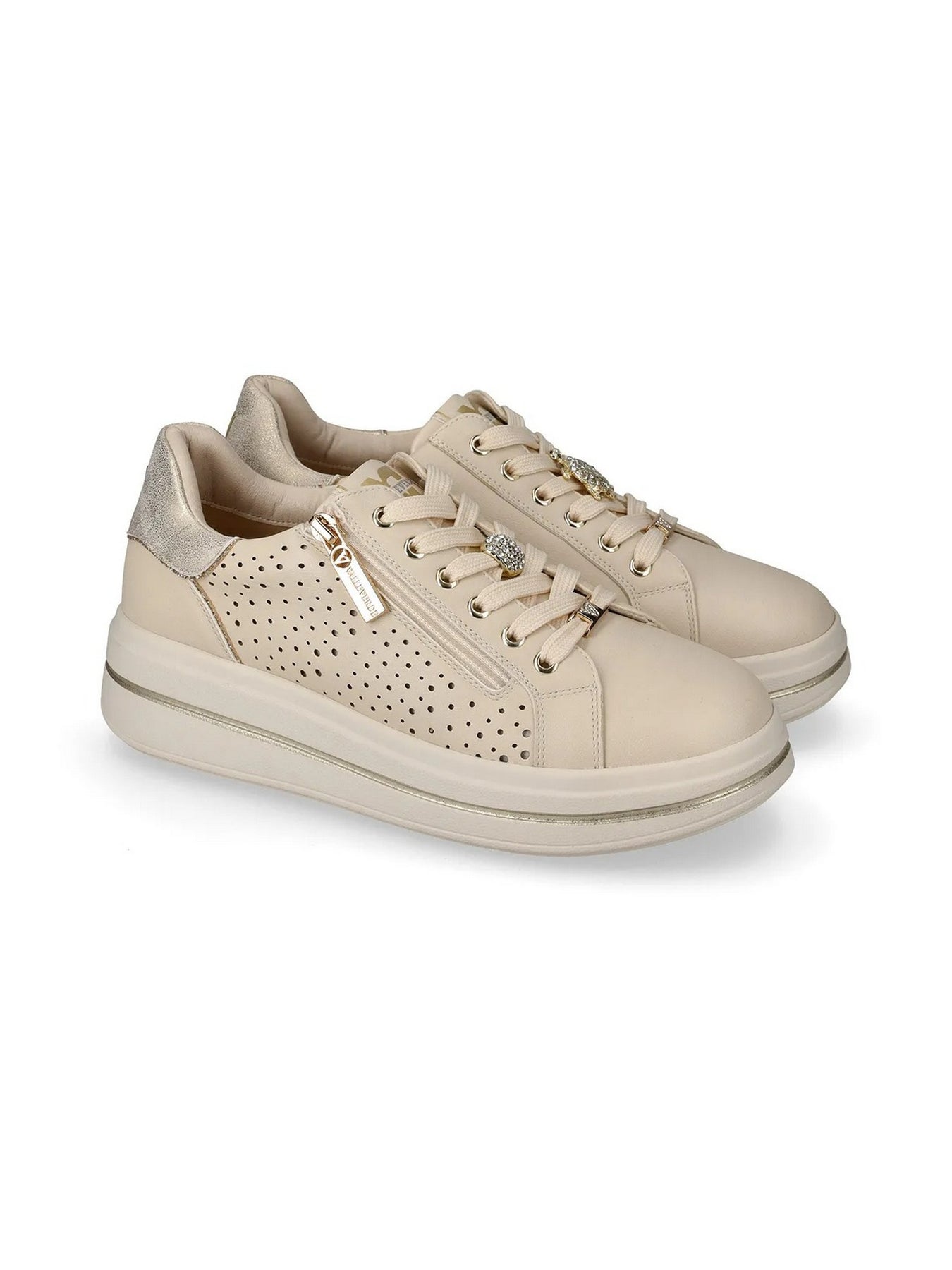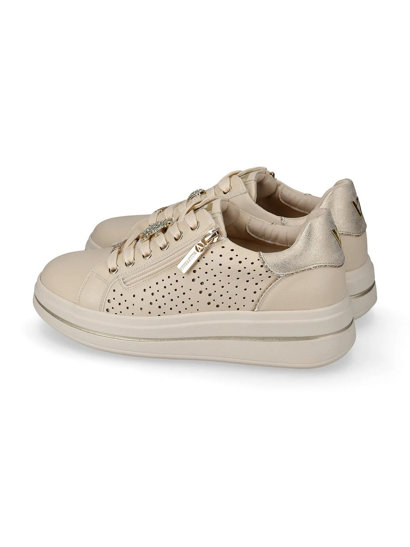 La VALLE VERDE Sneaker Con Zeppa Donna - 35493 Crema rappresenta una sneaker donna versatile e di tendenza, perfetta per accompagnare ogni momento della giornata con uno stile casual e moderno. Grazie ai materiali leggeri, alla zeppa interna e alla struttura ergonomica, garantisce comfort, praticità e l'inconfondibile qualità firmata VALLE VERDE.