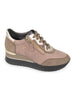 La sneaker VALLE VERDE 36428 è un modello dal design moderno e femminile, pensato per offrire comfort e stile in ogni occasione. Realizzata in pelle e camoscio color visone, presenta inserti laminati sui profili e sul tallone che aggiungono un tocco luminoso ed elegante.
