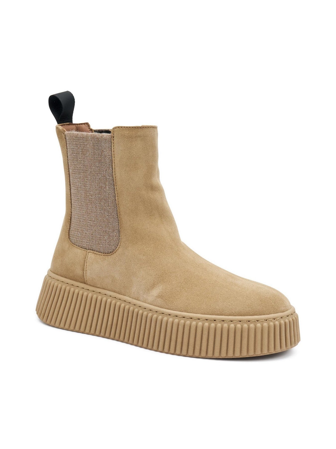 FRAU Beatles Donna - 40A5 Honey. Stivaletto chelsea in camoscio color miele con inserti elastici laterali e fondo platform in gomma zigrinata da 4 cm.