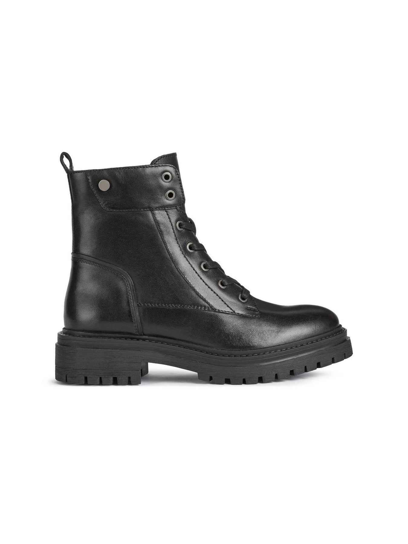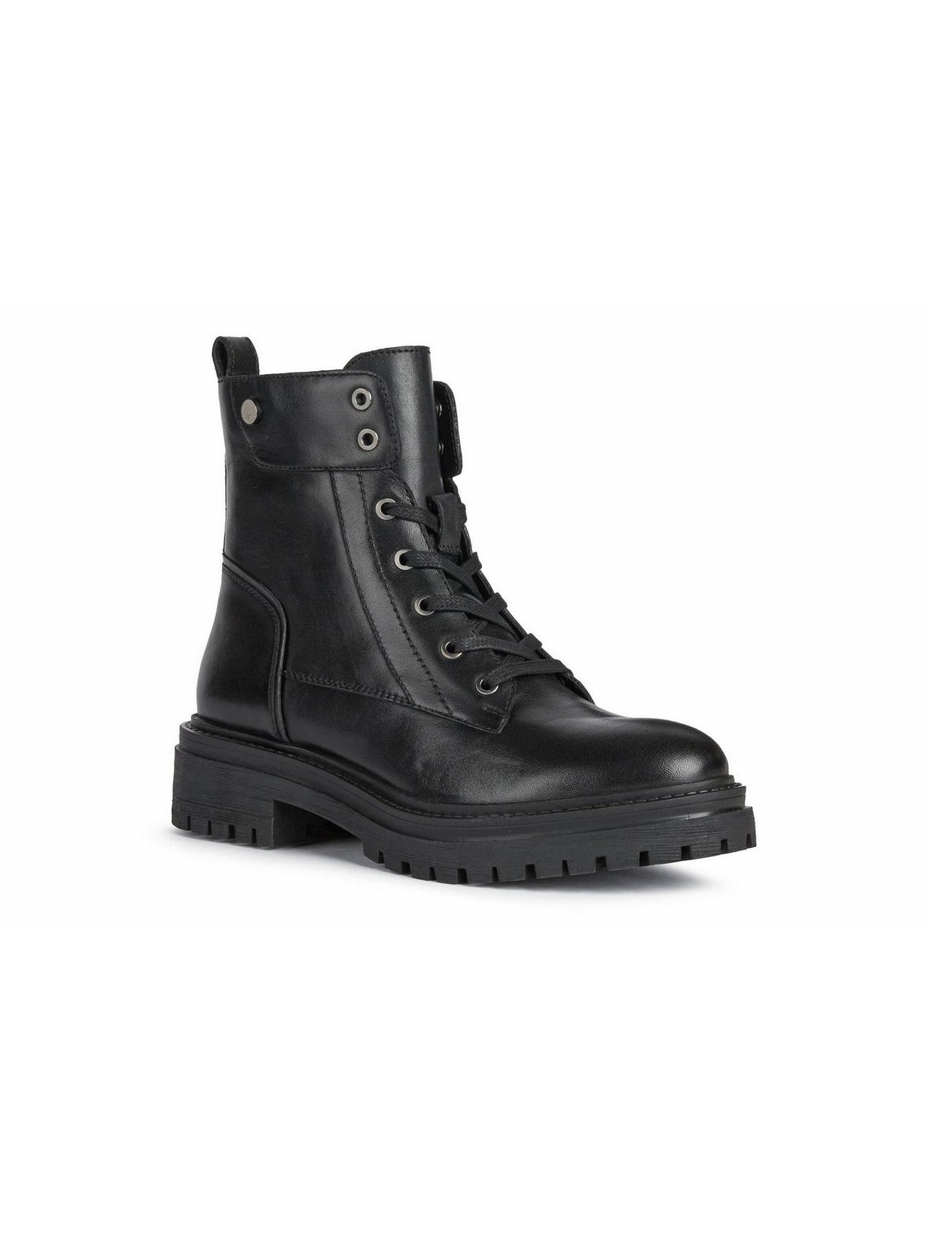GEOX Iridea Anfibi Tacco Basso Donna - D16HRC00043 Nero Anfibi donna in pelle nera con suola carrarmato e tacco basso da 4 cm.