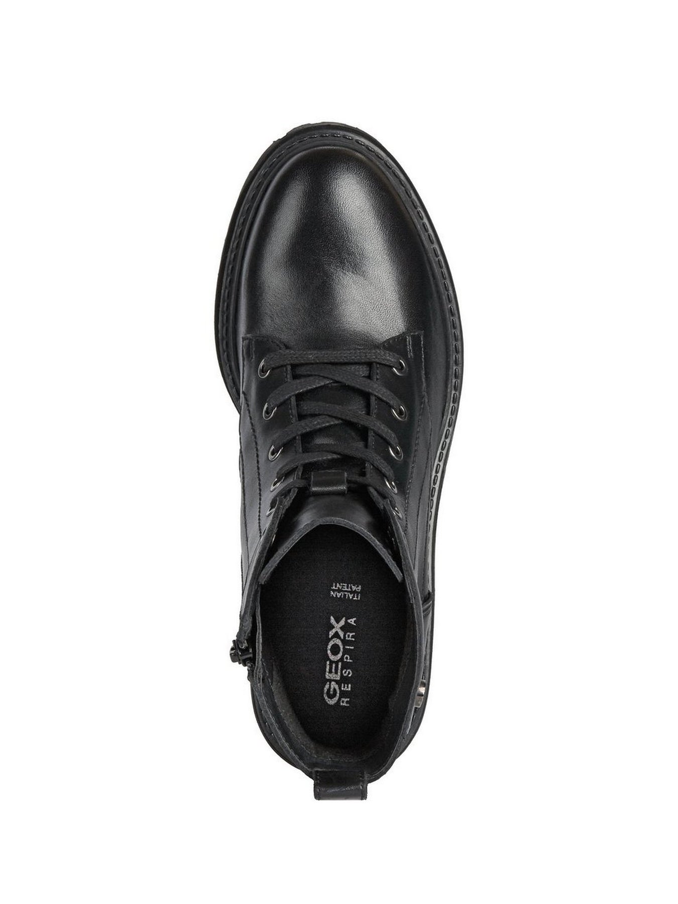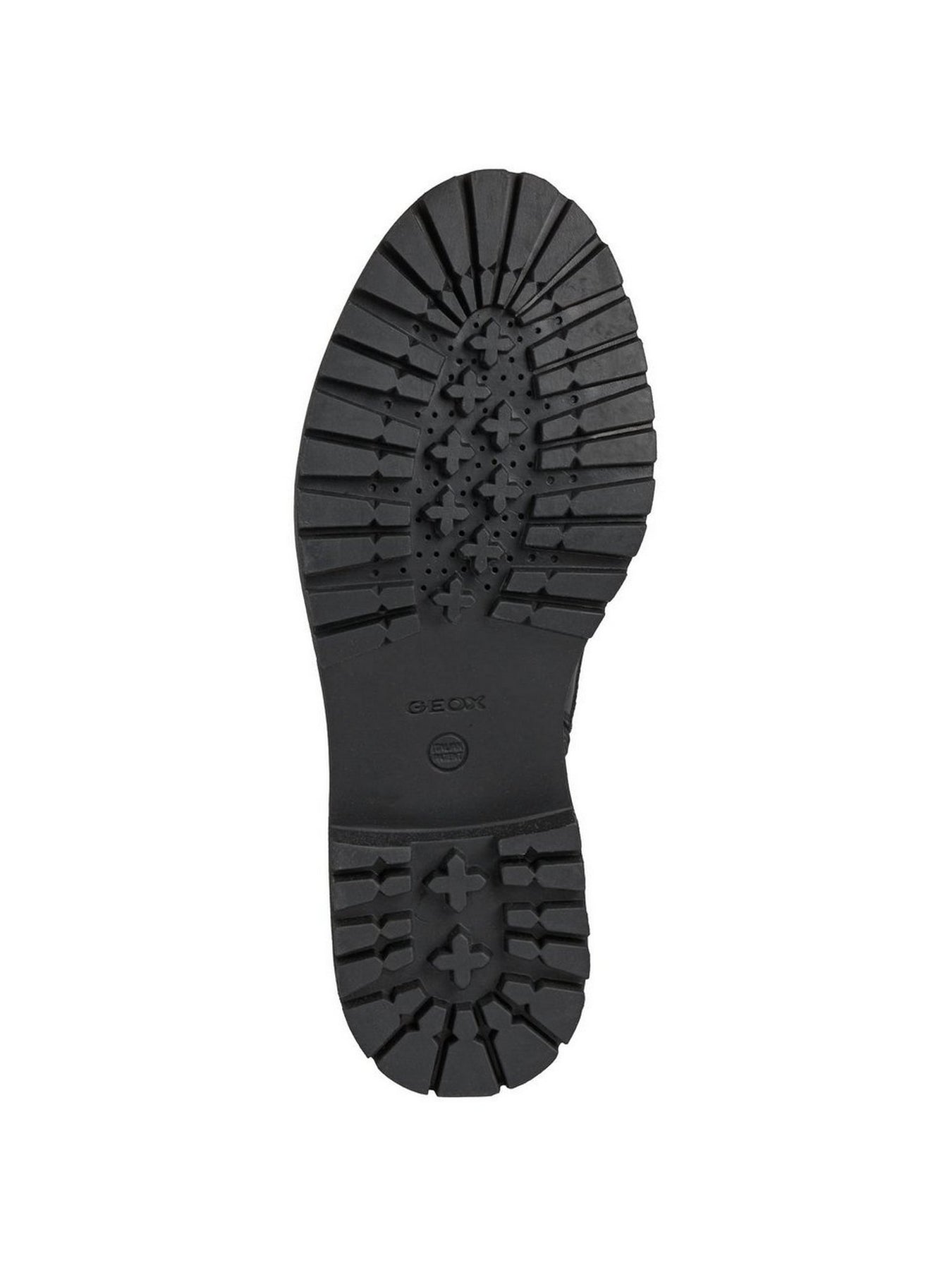 Realizzati in pelle nera di qualità, presentano una tomaia robusta con allacciatura frontale e zip laterale per una calzata rapida e funzionale. Il tacco basso da 4 cm e la suola carrarmato offrono stabilità, aderenza e resistenza su ogni superficie. La tecnologia traspirante GEOX assicura benessere al piede e comfort prolungato per tutta la giornata.
