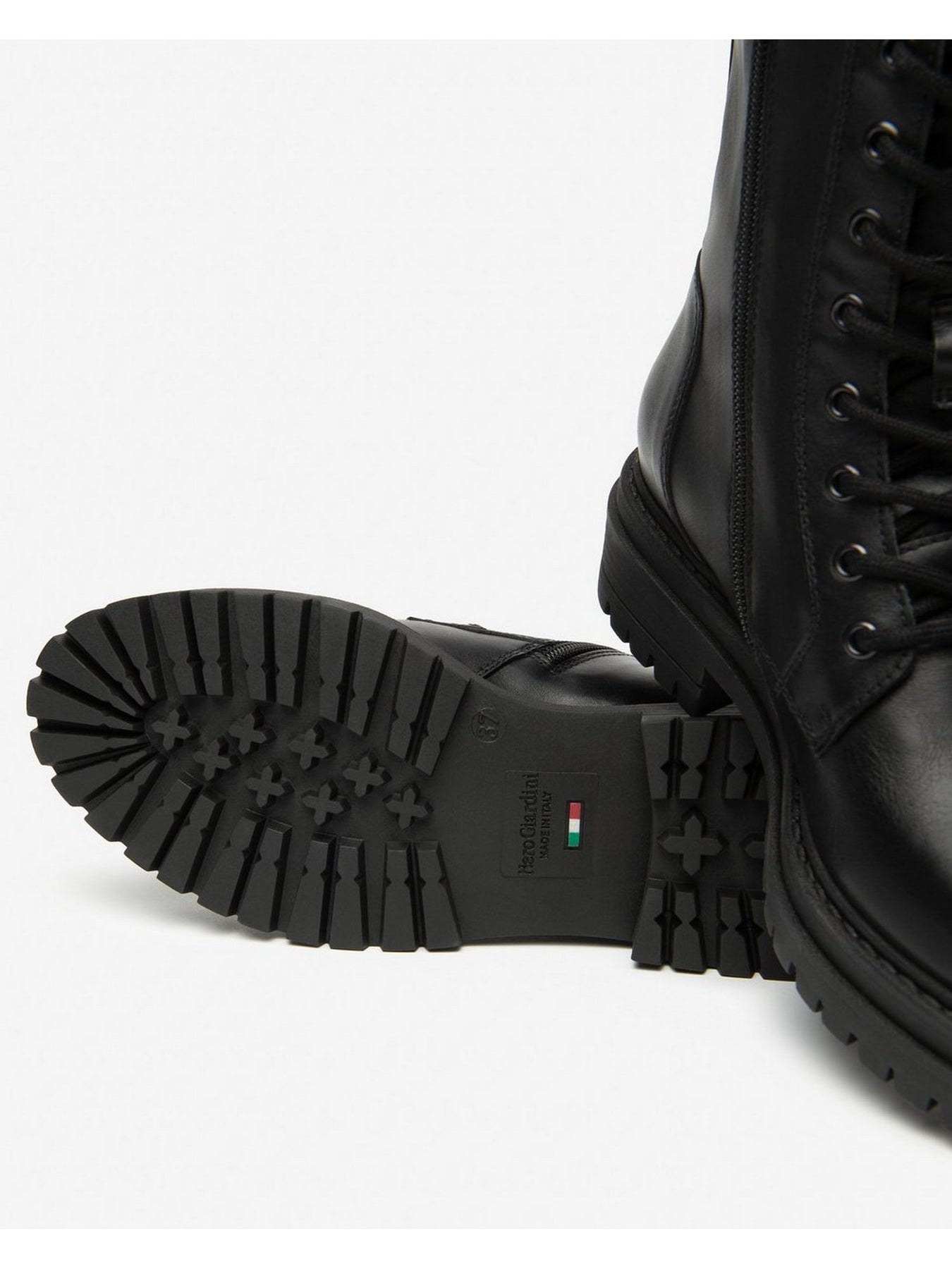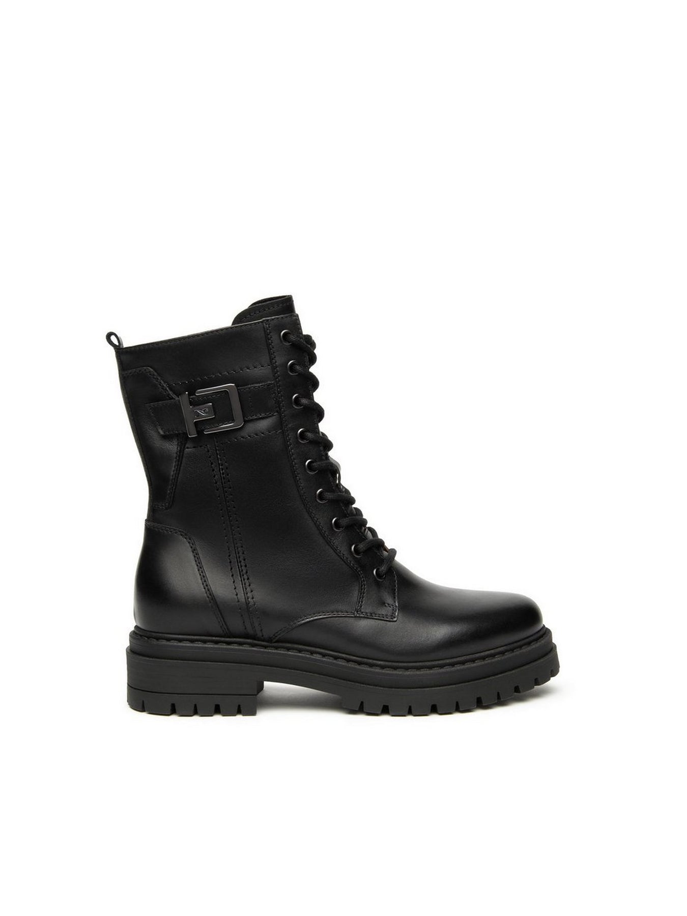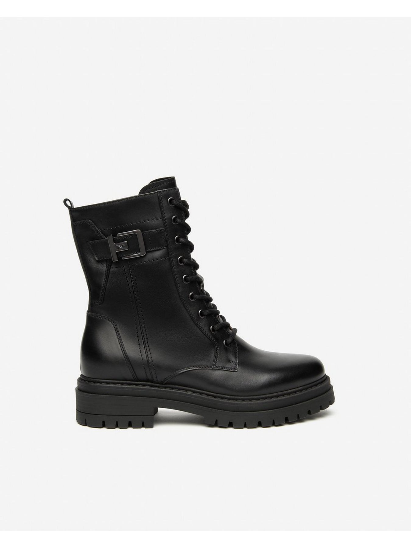 NERO GIARDINI Anfibi Tacco Basso Donna - I514833D Nero Anfibio da donna in pelle nera con fondo robusto e tacco a blocco da 4 cm. Design deciso e pratico con zip laterale.
