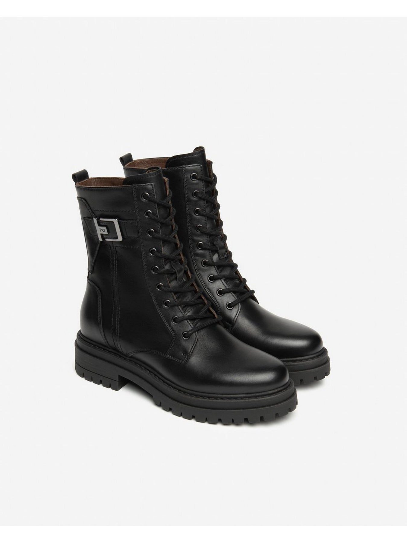 Realizzato interamente in pelle con fodera interna in pelle, questo anfibio combina qualità artigianale e comfort. Il modello stringato è arricchito da una fibbia decorativa laterale che ne accentua lo stile urban e grintoso.