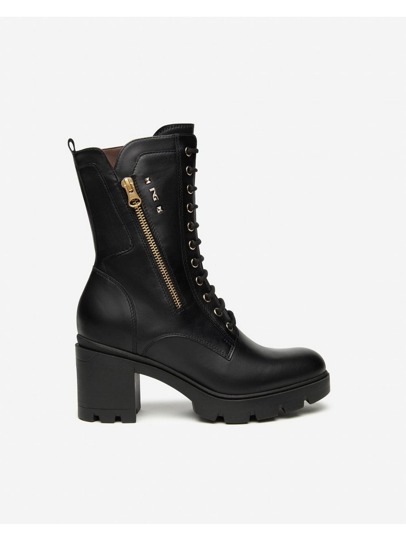 NERO GIARDINI Anfibi Tacco Medio Donna - I514881D Nero in pelle con zip laterale e tacco largo da 7 cm