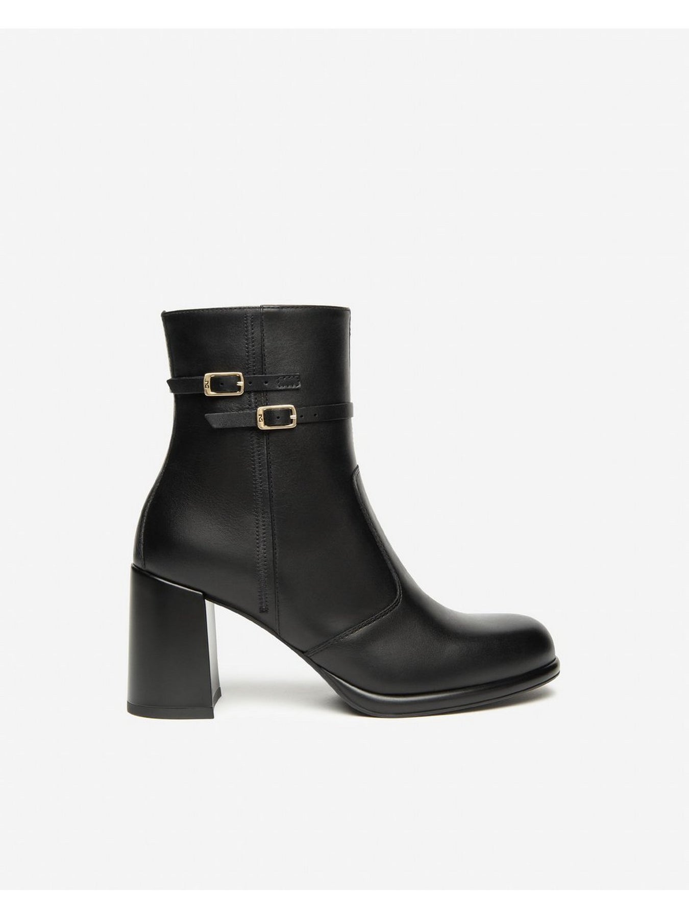 La zip laterale rende la calzata pratica e veloce, mentre il tacco a blocco alto da 8 cm garantisce slancio alla figura senza rinunciare a stabilità e comfort. La fodera interna in pelle assicura traspirabilità e benessere durante tutto il giorno.