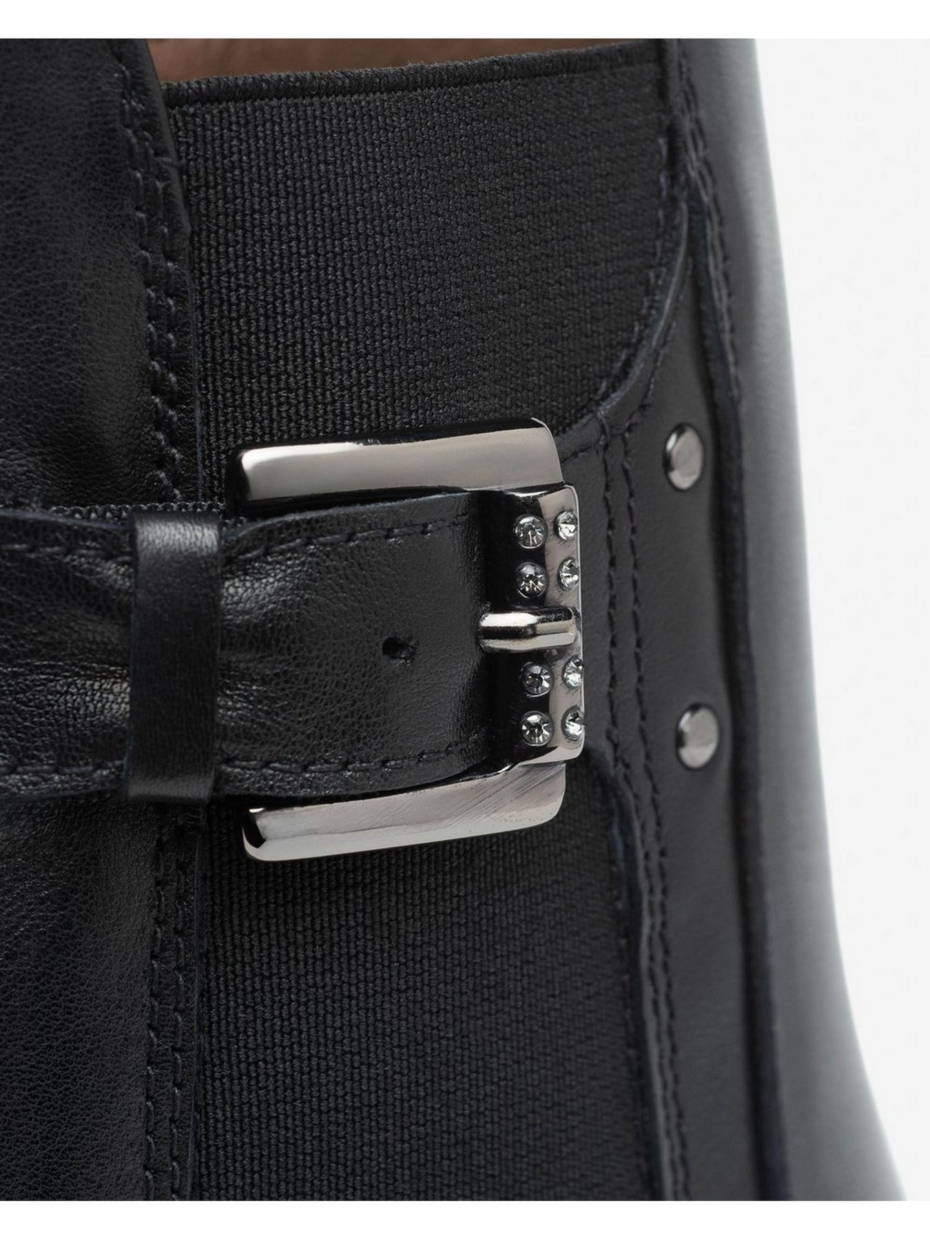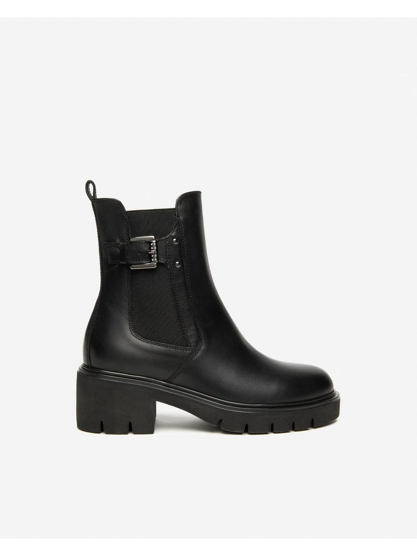 Questo tronchetto da donna è realizzato in pregiata pelle nera, caratterizzato da linee moderne ed eleganti che valorizzano ogni outfit. La zip laterale interna rende la calzata semplice e veloce, garantendo praticità senza rinunciare allo stile.