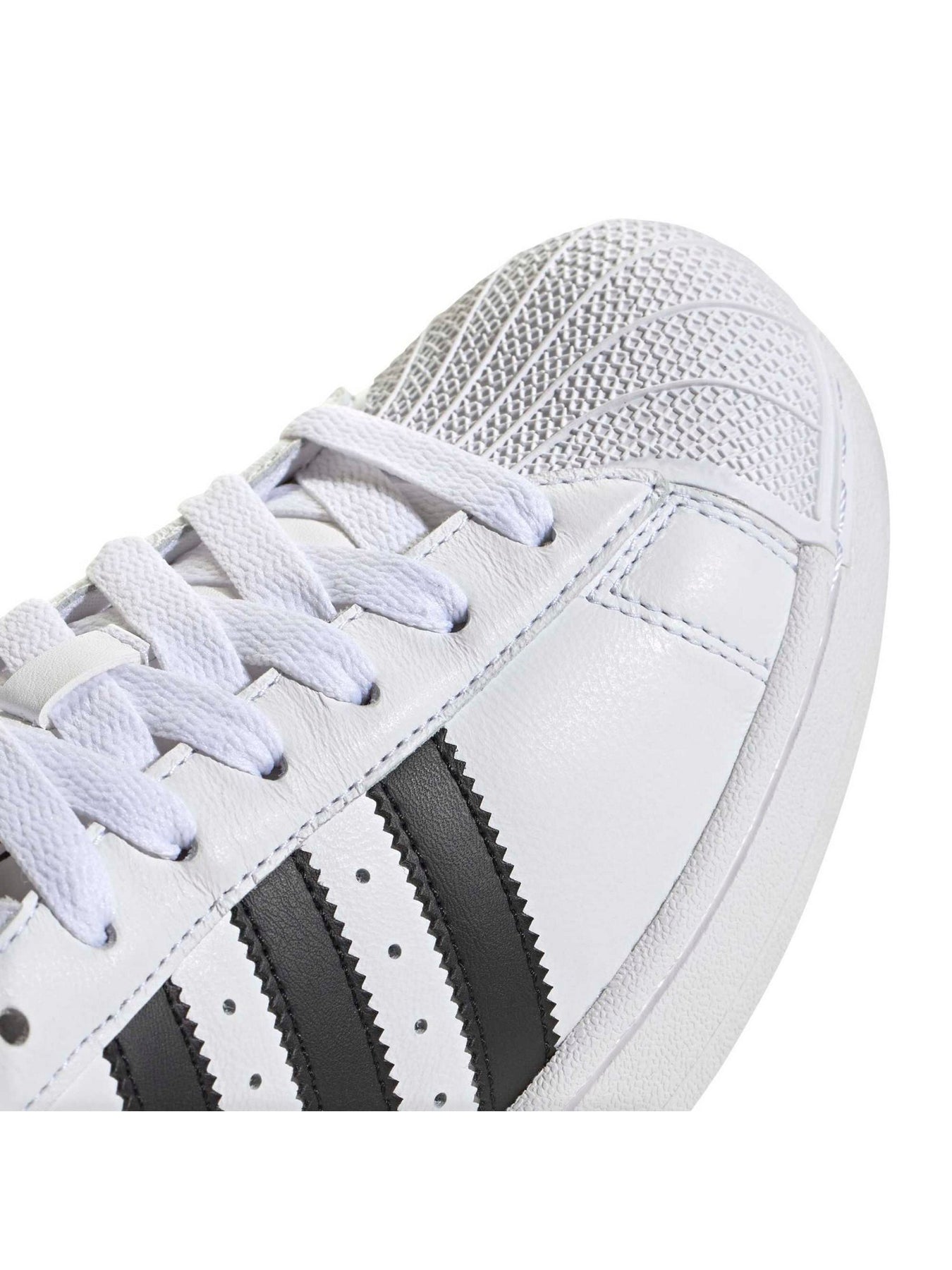 Realizzate in pelle liscia bianca di alta qualità, le ADIDAS Superstar II si distinguono per il loro design pulito ed essenziale, arricchito dalle iconiche tre strisce laterali nere e dal celebre shell toe in gomma sulla punta, simbolo storico del brand. La silhouette bassa garantisce libertà di movimento e uno stile versatile, adatto a ogni stagione.