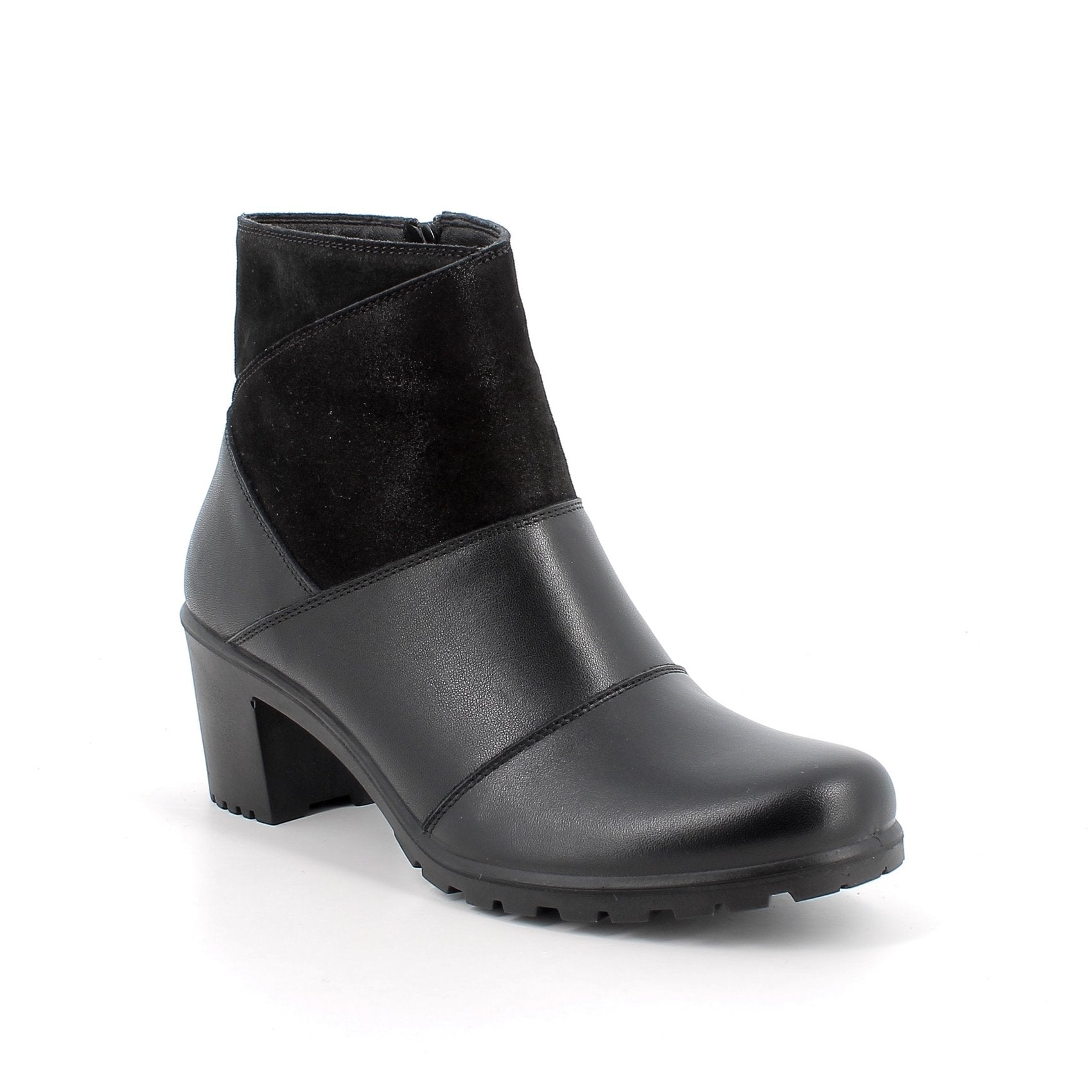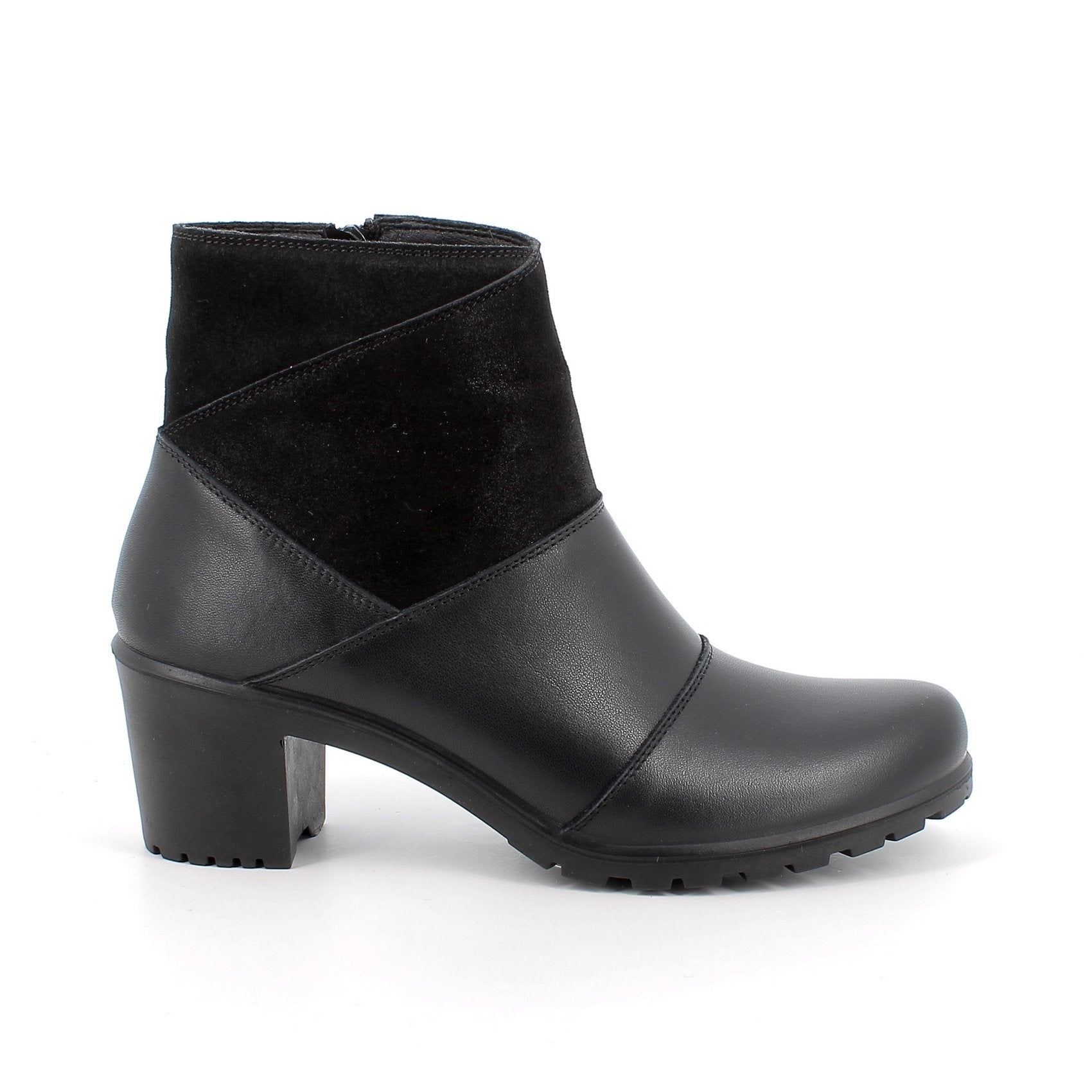 ENVAL SOFT Tronchetto Tacco Medio Donna - 87551 Nero in pelle e camoscio con chiusura laterale e suola antiscivolo