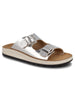 La tomaia in materiale effetto metallizzato argento dona un tocco moderno e luminoso, perfetto per look estivi freschi e vivaci. La soletta anatomica sostiene il piede in modo naturale, mentre la suola leggera e antiscivolo garantisce sicurezza su ogni superficie.