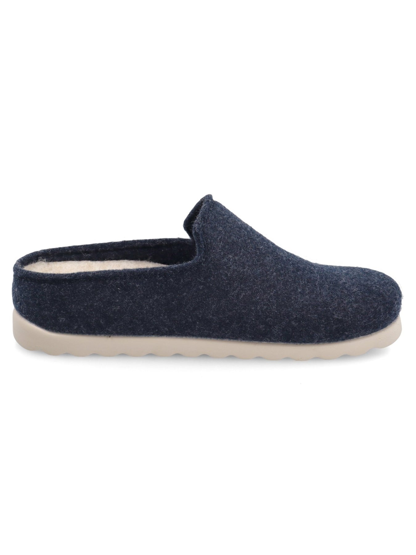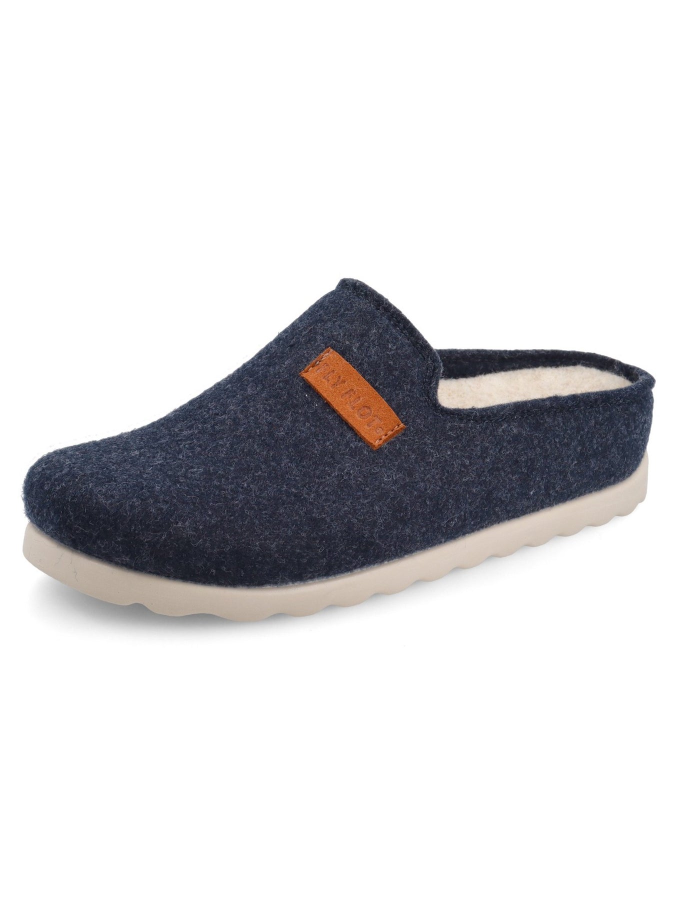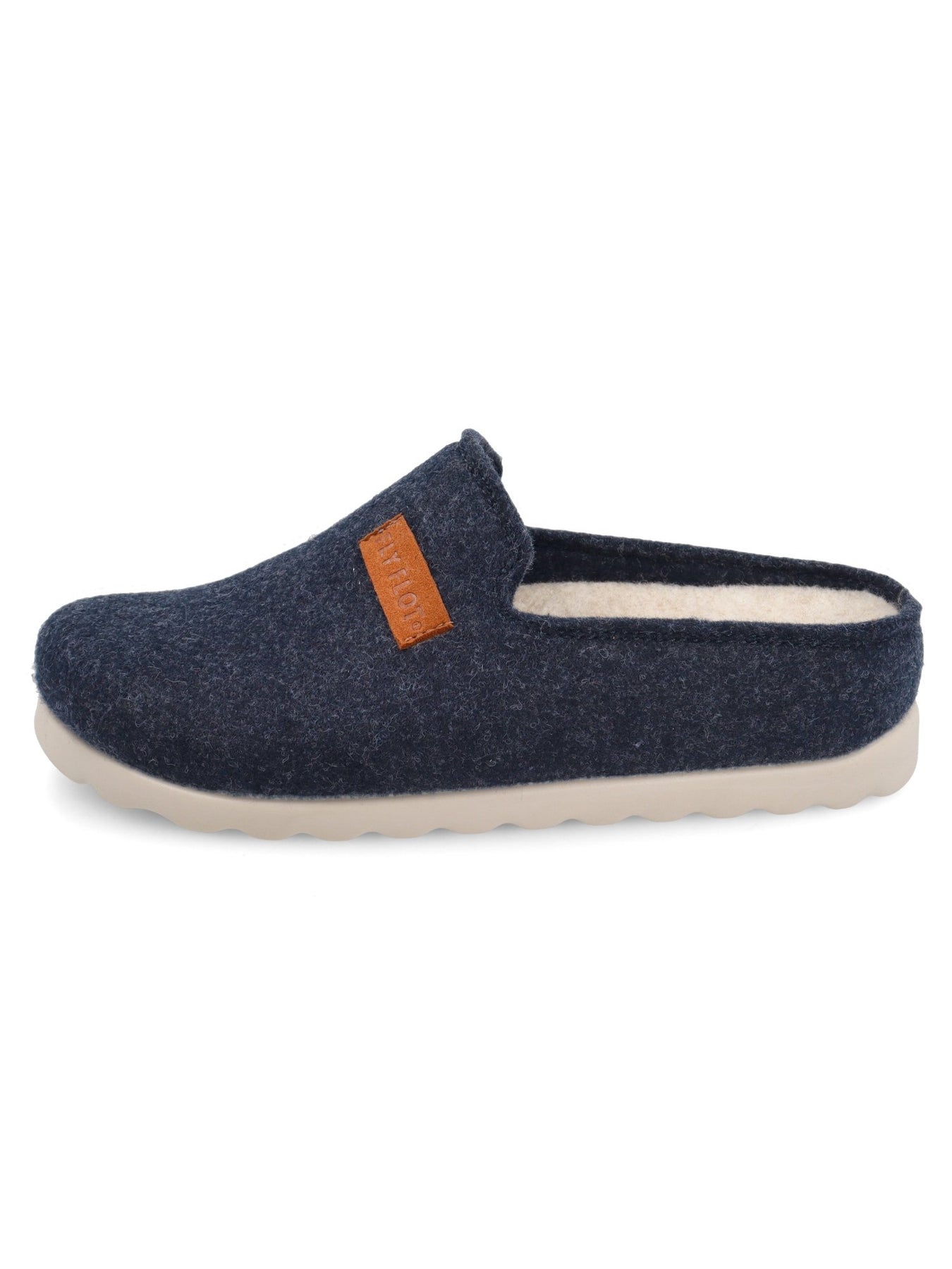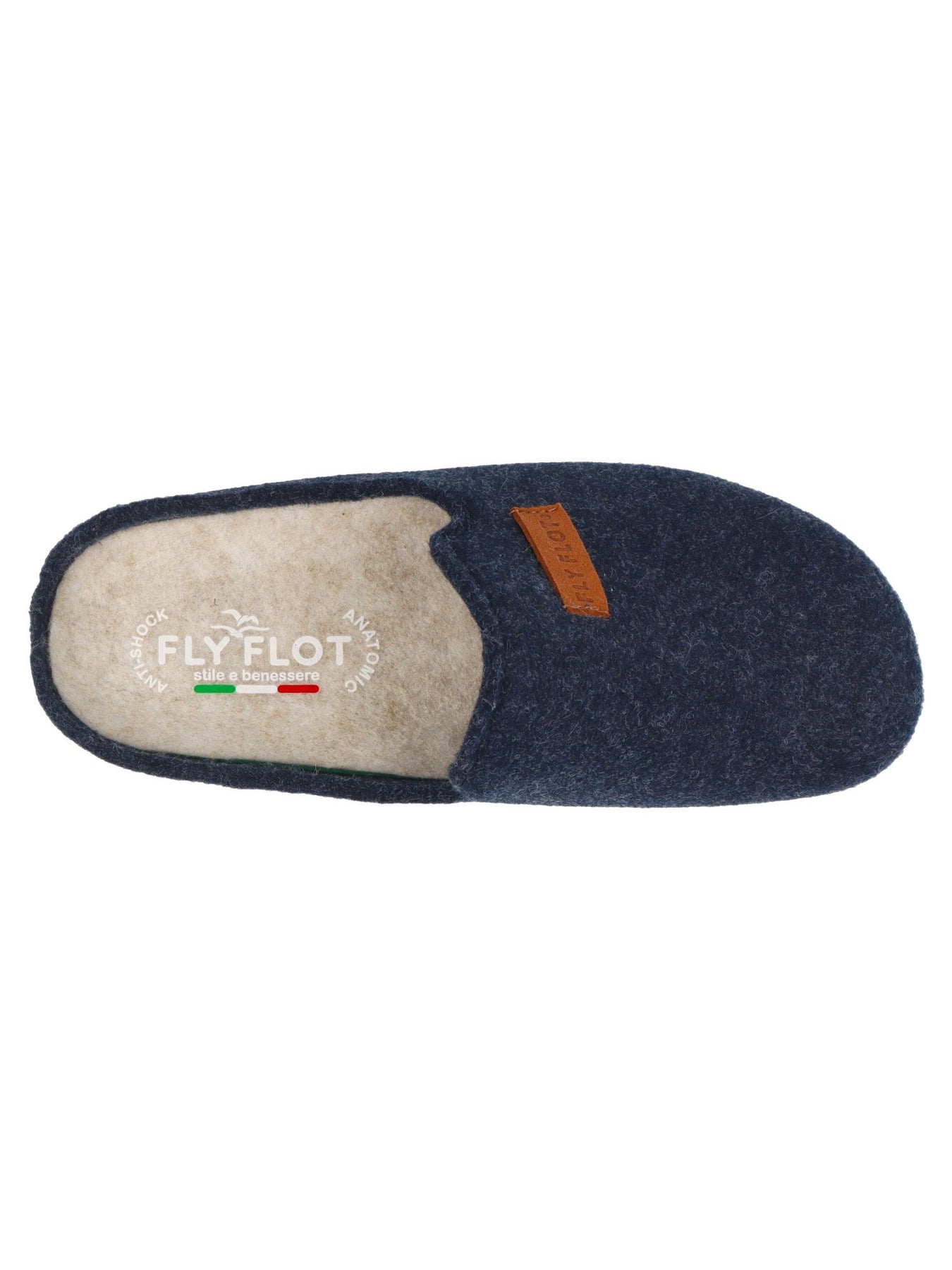Realizzata in morbido feltro blu, questa pantofola presenta un design semplice e avvolgente, impreziosito da un inserto in ecopelle con logo FLY FLOT che aggiunge un tocco elegante e riconoscibile. L'interno è foderato in tessuto caldo effetto lana, garantendo una sensazione di comfort e protezione anche nelle giornate più fredde.