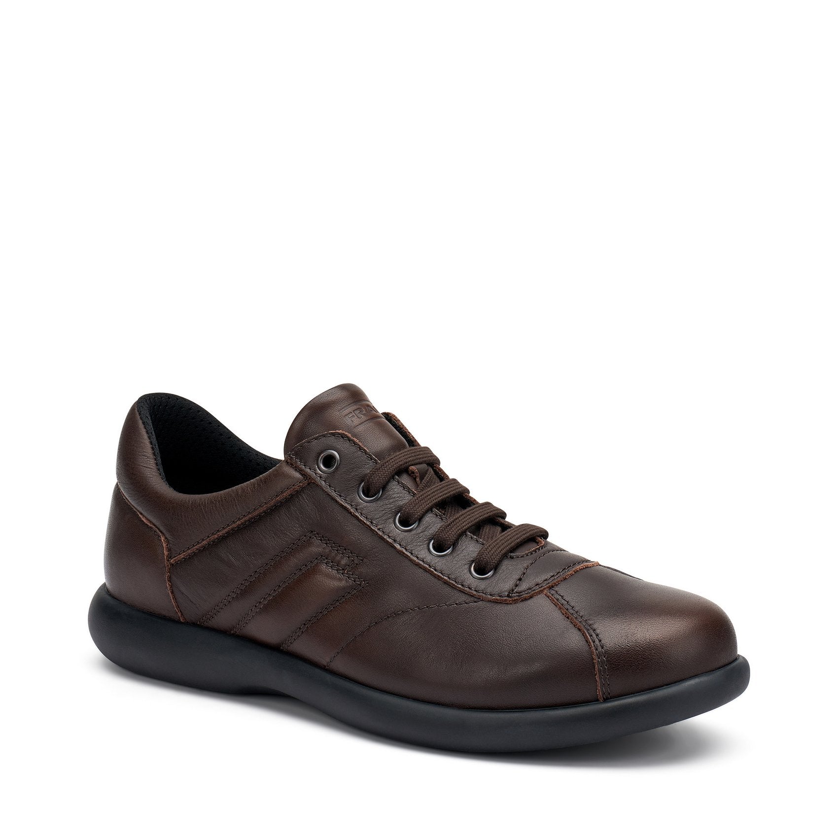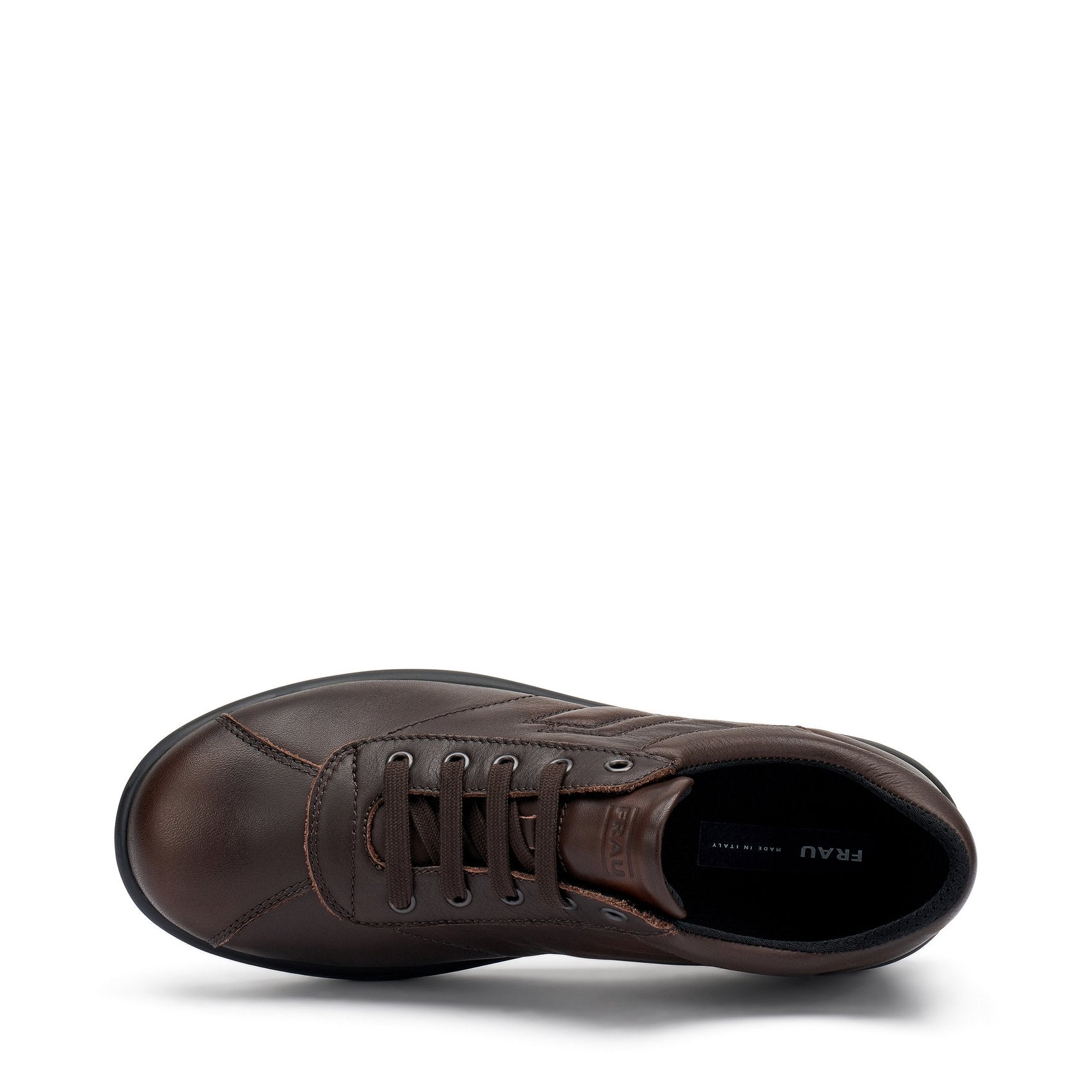 Realizzata in morbida pelle color legno, questa sneaker bassa si distingue per le linee essenziali e le cuciture tono su tono che valorizzano la qualità artigianale del marchio FRAU. La chiusura con lacci garantisce una calzata stabile e personalizzabile, mentre l'interno foderato in tessuto traspirante offre comfort e benessere prolungato.
