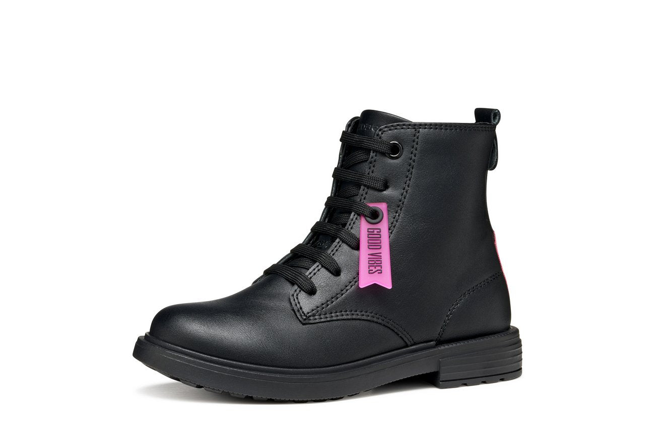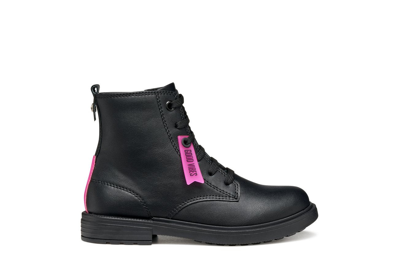 GEOX Eclair Girl Anfibi Bambina - J569QA000BC Black/Fuchsia in pelle sintetica nera con dettagli fucsia e suola in gomma traspirante.