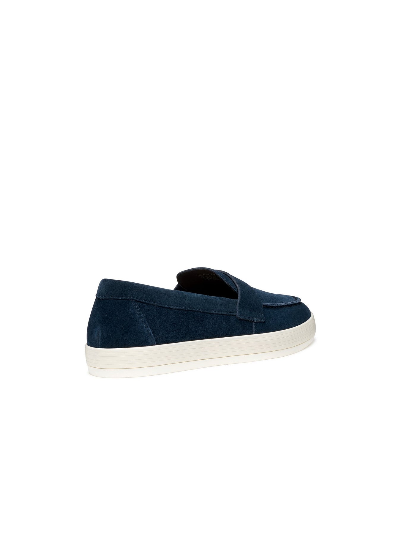 Tomaia Esterna: realizzata in pelle scamosciata di vitello nella tonalità blu, progettata per offrire eleganza, resistenza e uno stile casual raffinato
