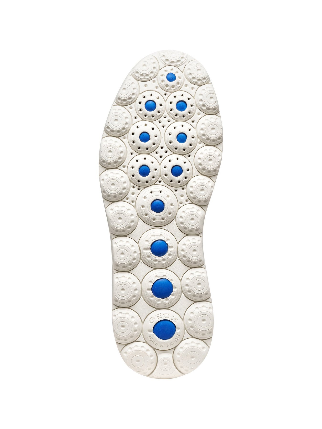Suola: suola in materiale sintetico con tecnologia traspirante GEOX e sistema ammortizzante Spherica Plus™ per favorire assorbimento degli urti, stabilità e leggerezza