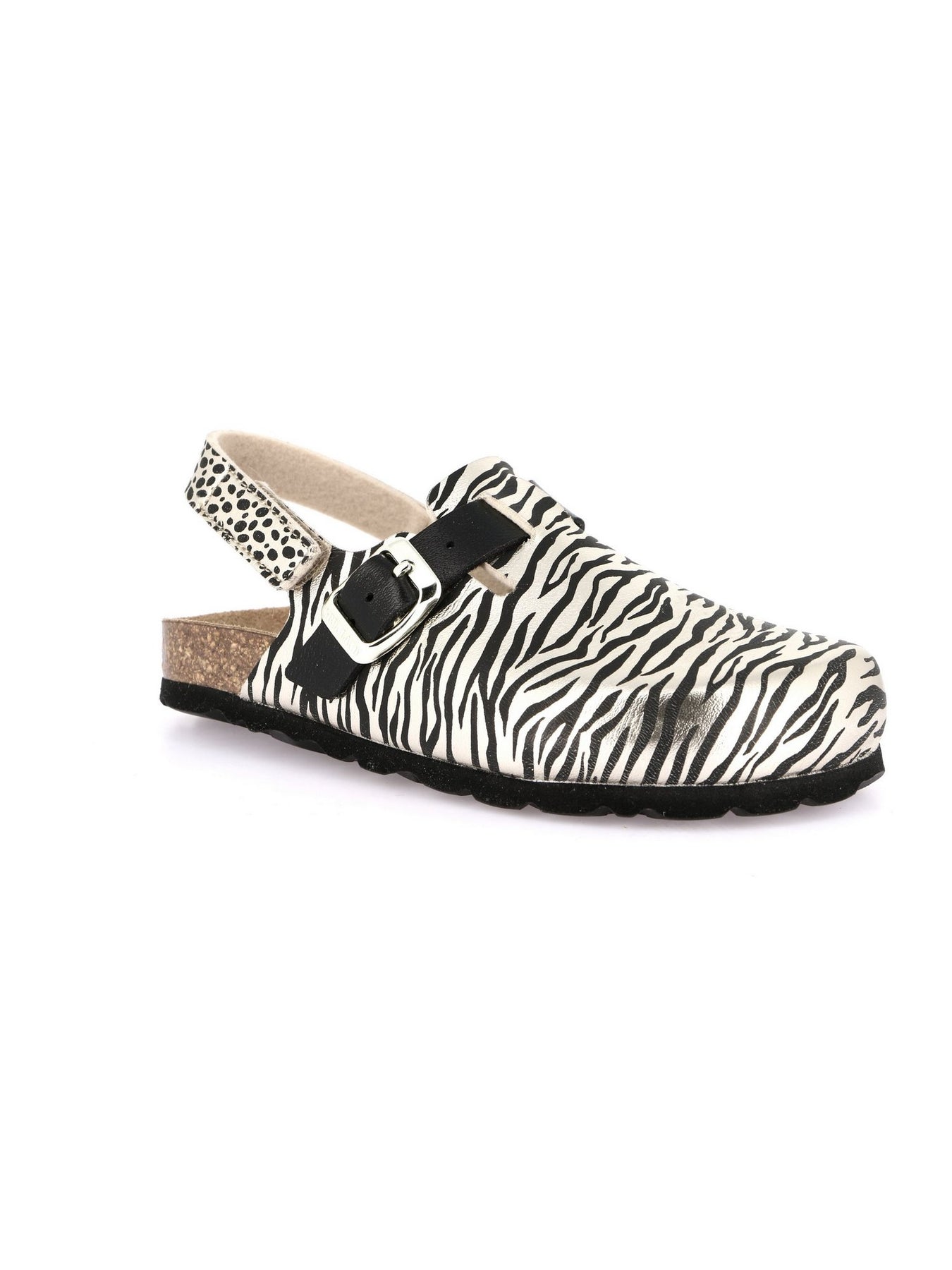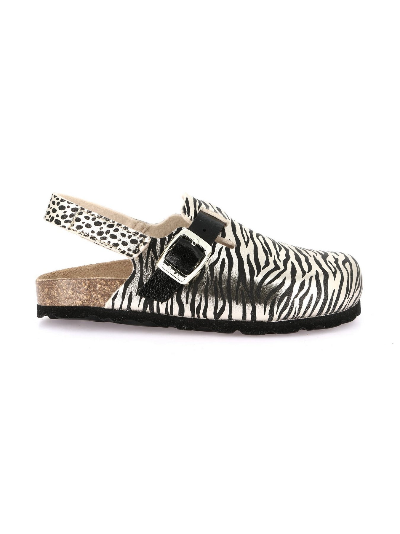 Il sabot GRUNLAND modello SB1137 in versione Platino-Multi è una calzatura originale e divertente pensata per le bambine che amano distinguersi con stile. Il design animalier zebra con dettagli a contrasto dona un tocco fashion, perfetto per look grintosi e alla moda.
