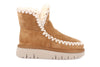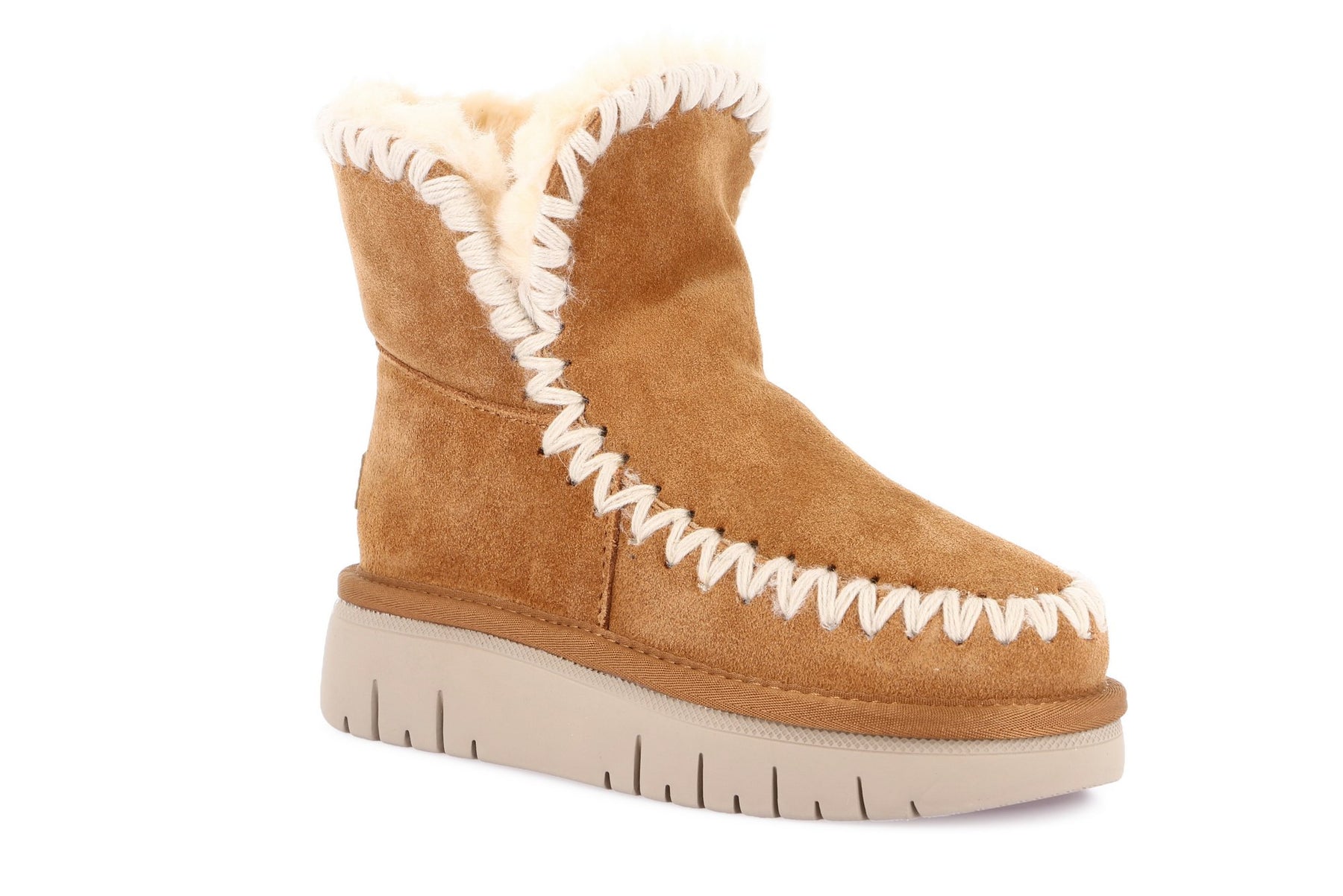 Realizzato in morbido materiale scamosciato, è arricchito da cuciture bianche a vista che donano un tocco di stile artigianale. L'interno in pelliccia sintetica garantisce comfort e calore costante, mentre la suola in gomma leggera e flessibile assicura stabilità e aderenza.