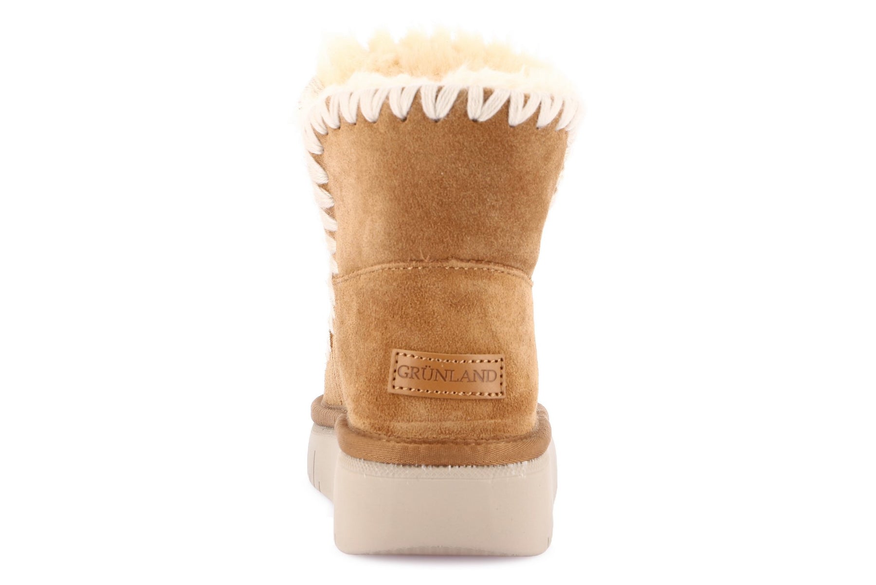 GRUNLAND Scarponcino Bambina - PO1837 Cuoio Scarponcino in tessuto scamosciato color cuoio con cuciture decorative a contrasto e fodera interna in pelliccia