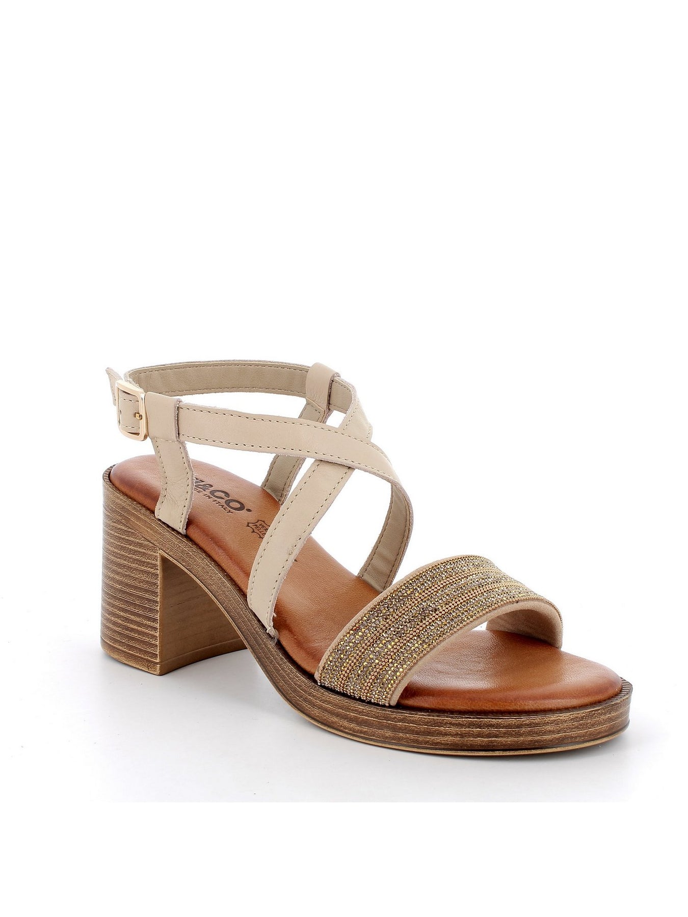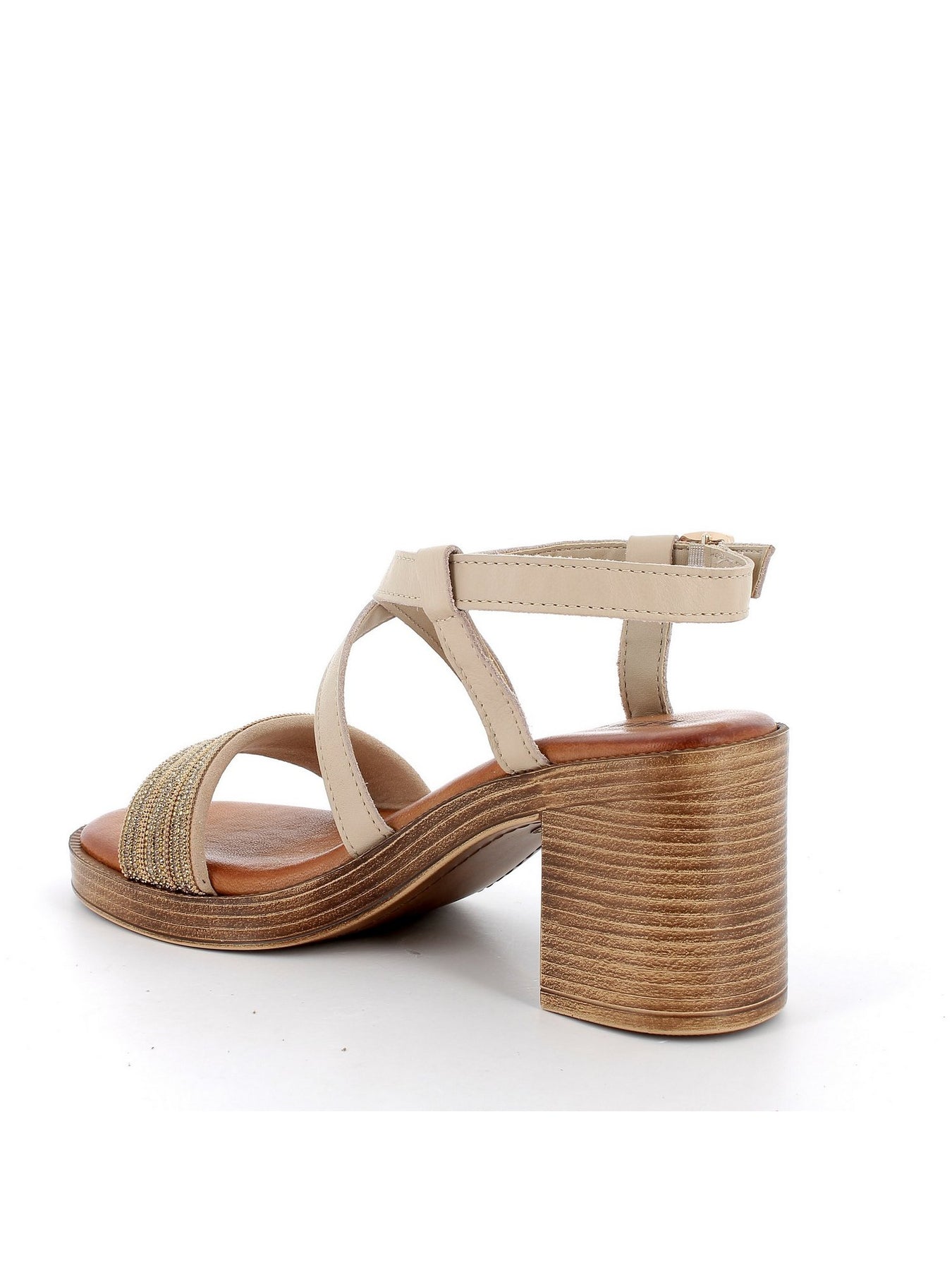 Il sandalo IGI&CO 76927 in tonalità burro è la scelta perfetta per chi cerca eleganza, comfort e stile raffinato. La tomaia in pelle chiara è impreziosita da una fascia frontale con dettagli brillanti dorati, che donano luce e femminilità alla calzatura.