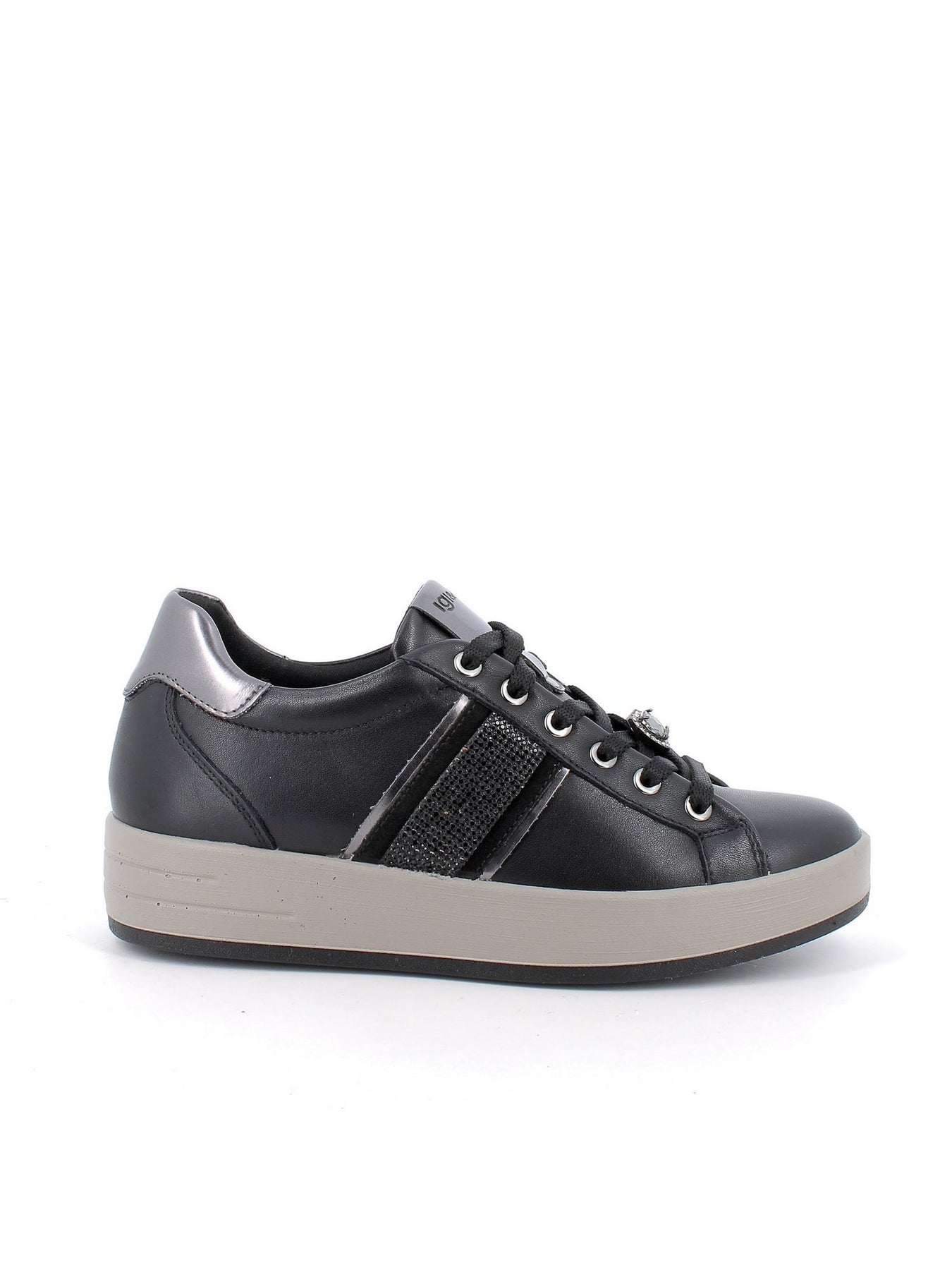 IGI&CO Sneaker Con Zeppa Donna - 86686 Nero/Hematite. Sneaker in pelle con dettagli luminosi e zeppa comoda da 5 cm.