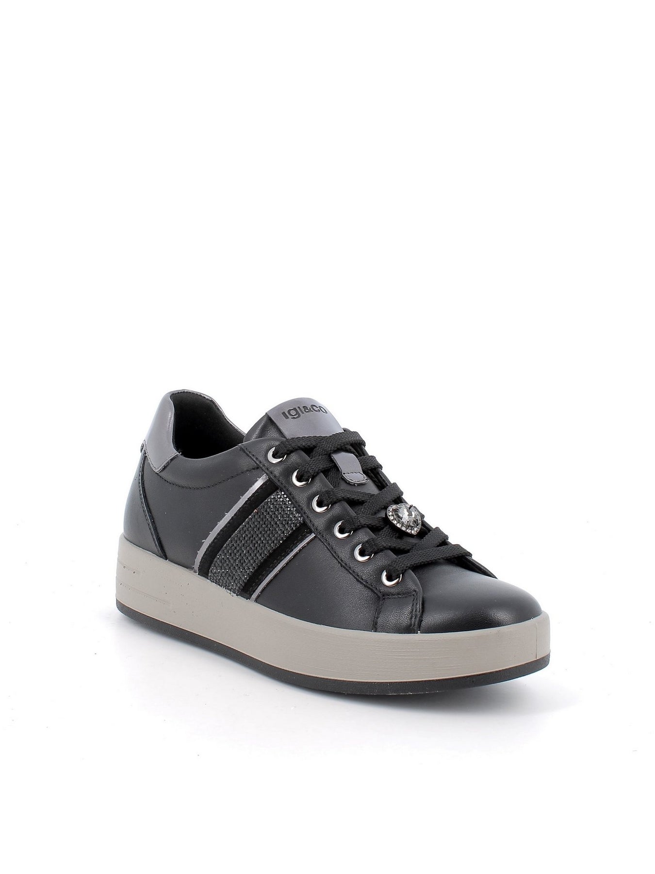 La sneaker IGI&CO 86686 Nero/Hematite è una scarpa dal design moderno e femminile, realizzata in pelle con inserti luminosi e finiture metallizzate che le conferiscono un tocco fashion.
