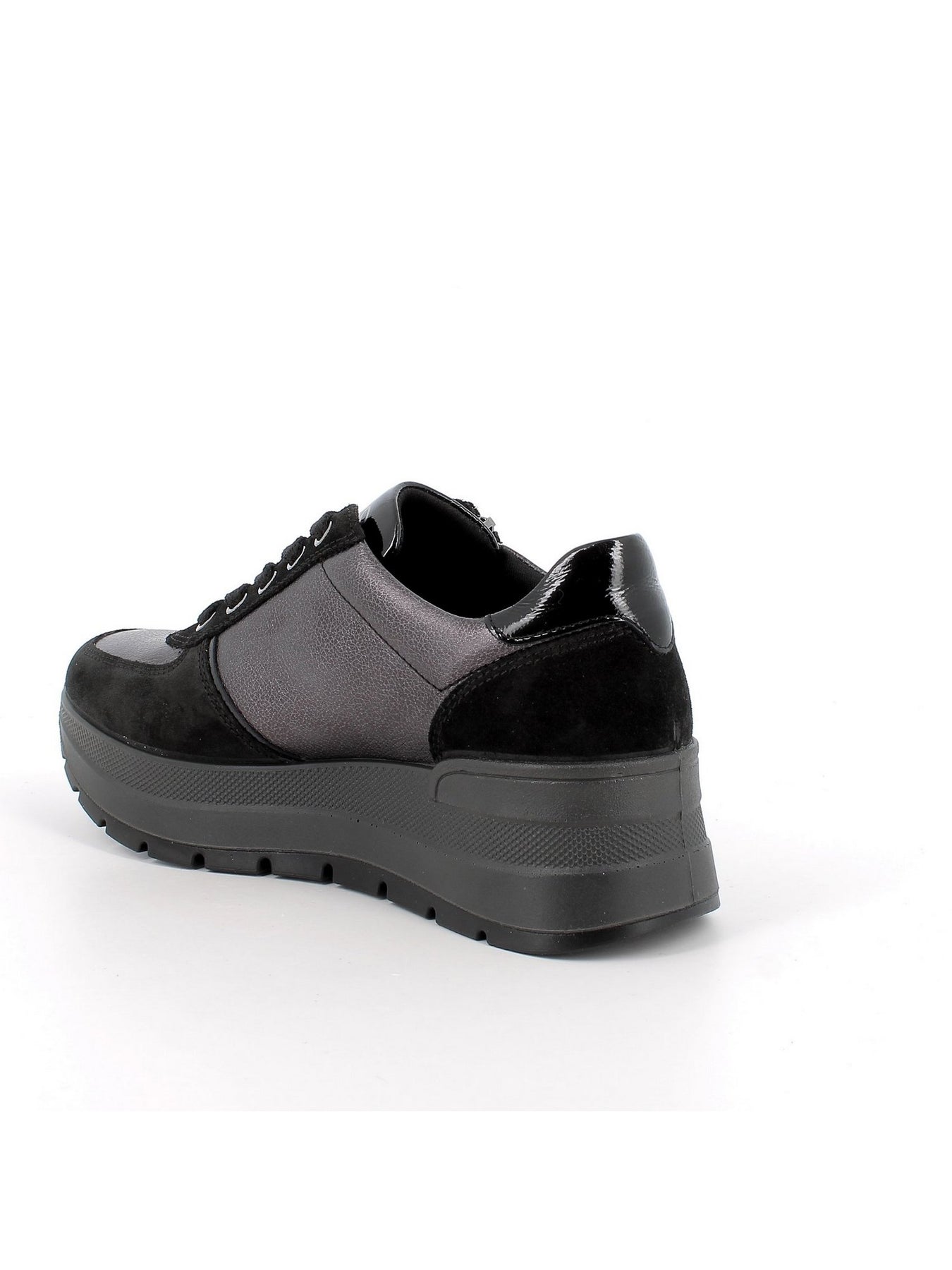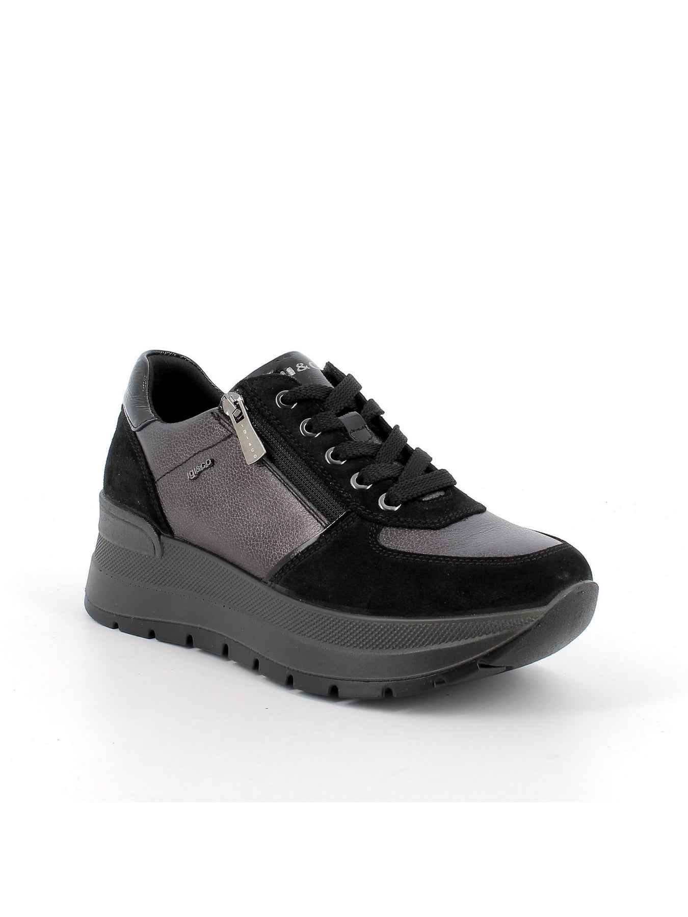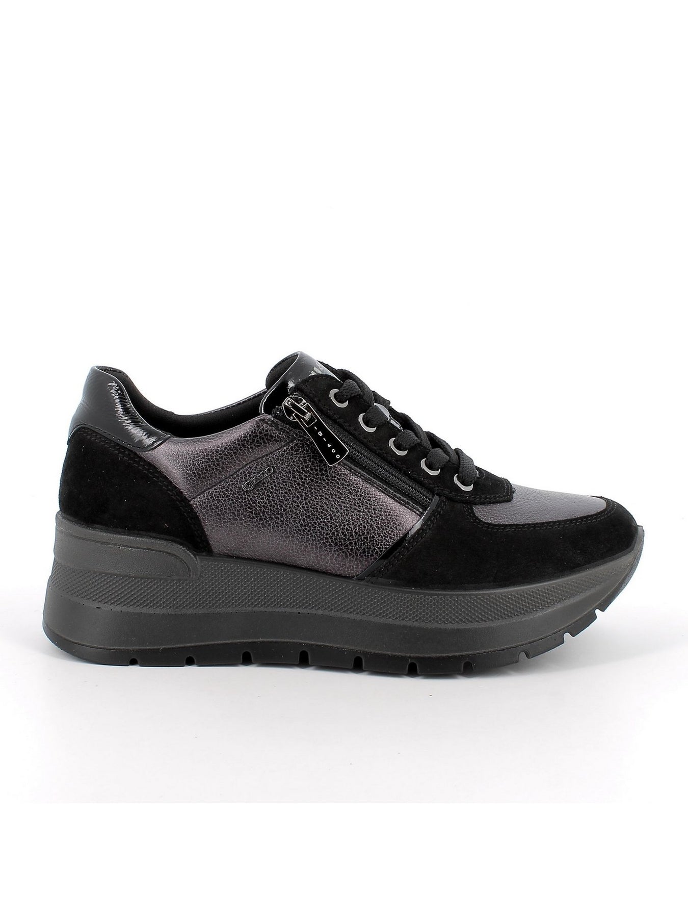 IGI&CO Sneaker Con Zeppa Donna - 86775 Nero/Antracite. Sneaker in pelle e camoscio con zip laterale e zeppa da 6 cm.