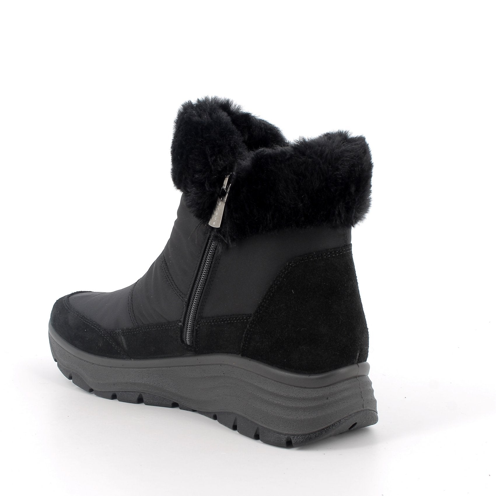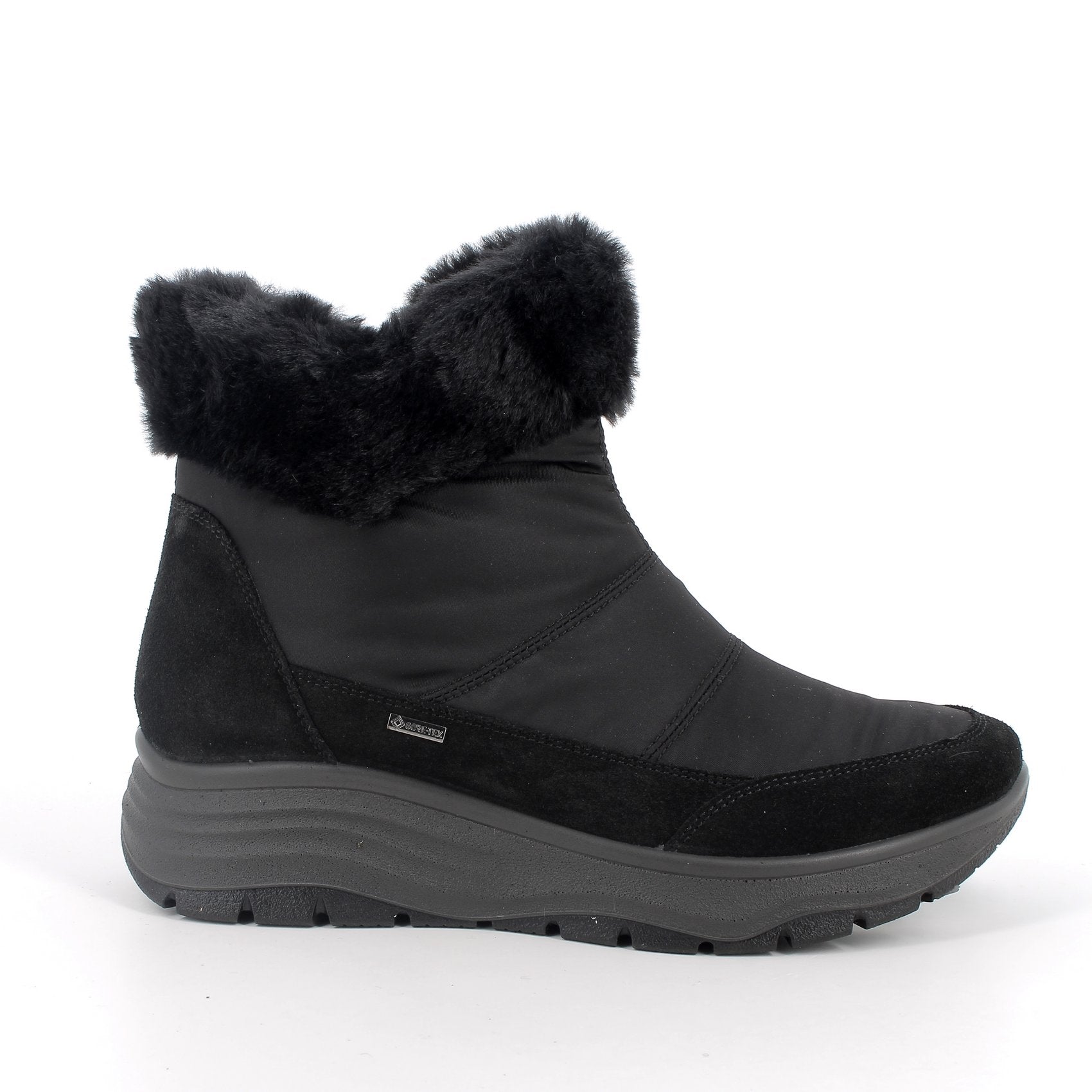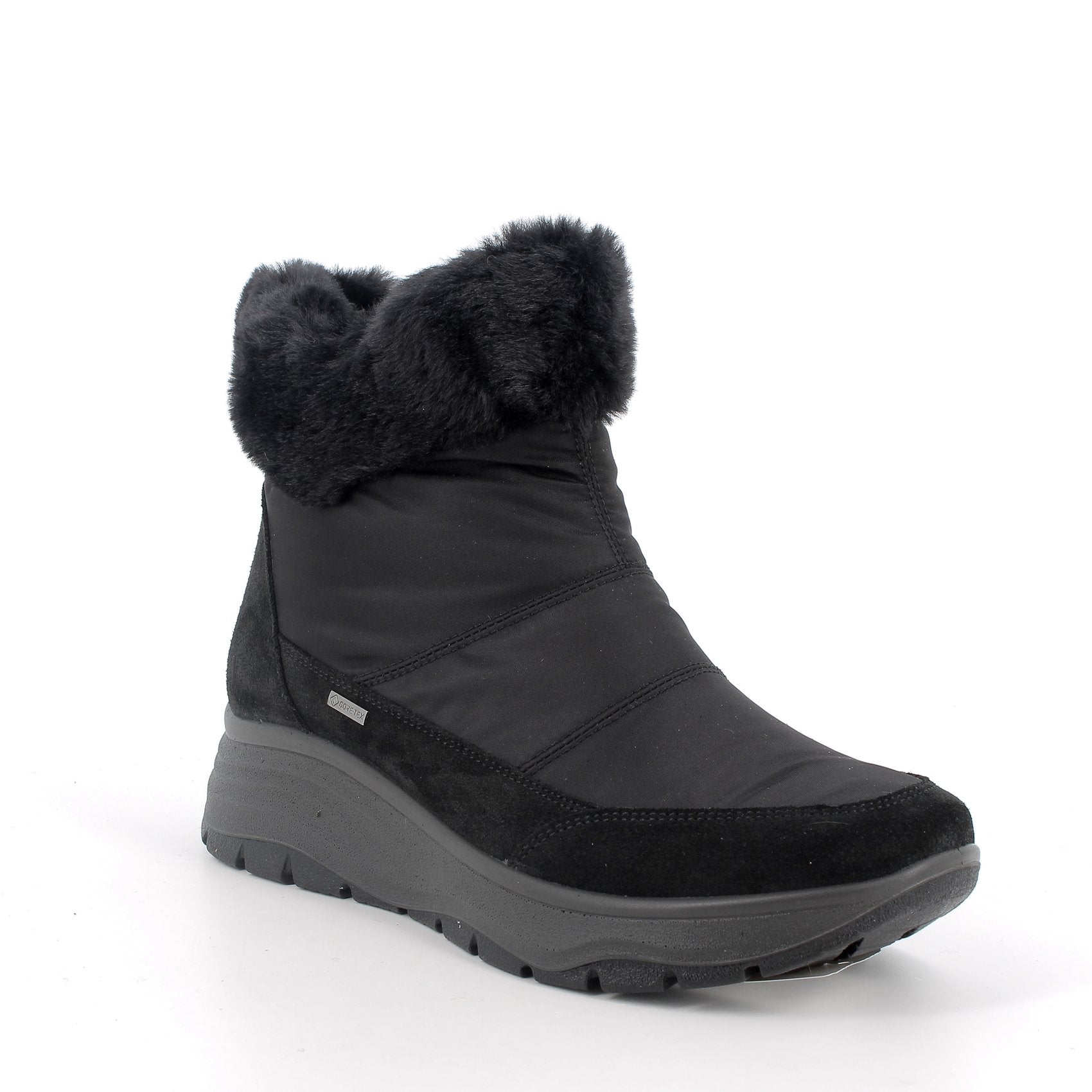 Realizzato in morbido materiale tecnico e pelle scamosciata nei toni del nero, questo stivale unisce un design elegante a elevate prestazioni. L'interno è foderato in morbida eco-pelliccia, che assicura una piacevole sensazione di calore e comfort, mentre la zeppa integrata offre un leggero rialzo che slancia la figura senza rinunciare alla comodità.