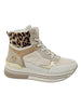 Questa sneaker mid-cut combina materiali effetto pelle e tessuto con finiture dorate e dettagli animalier sul collarino che donano personalità e stile. L'interno caldo garantisce comfort e protezione durante i mesi freddi.