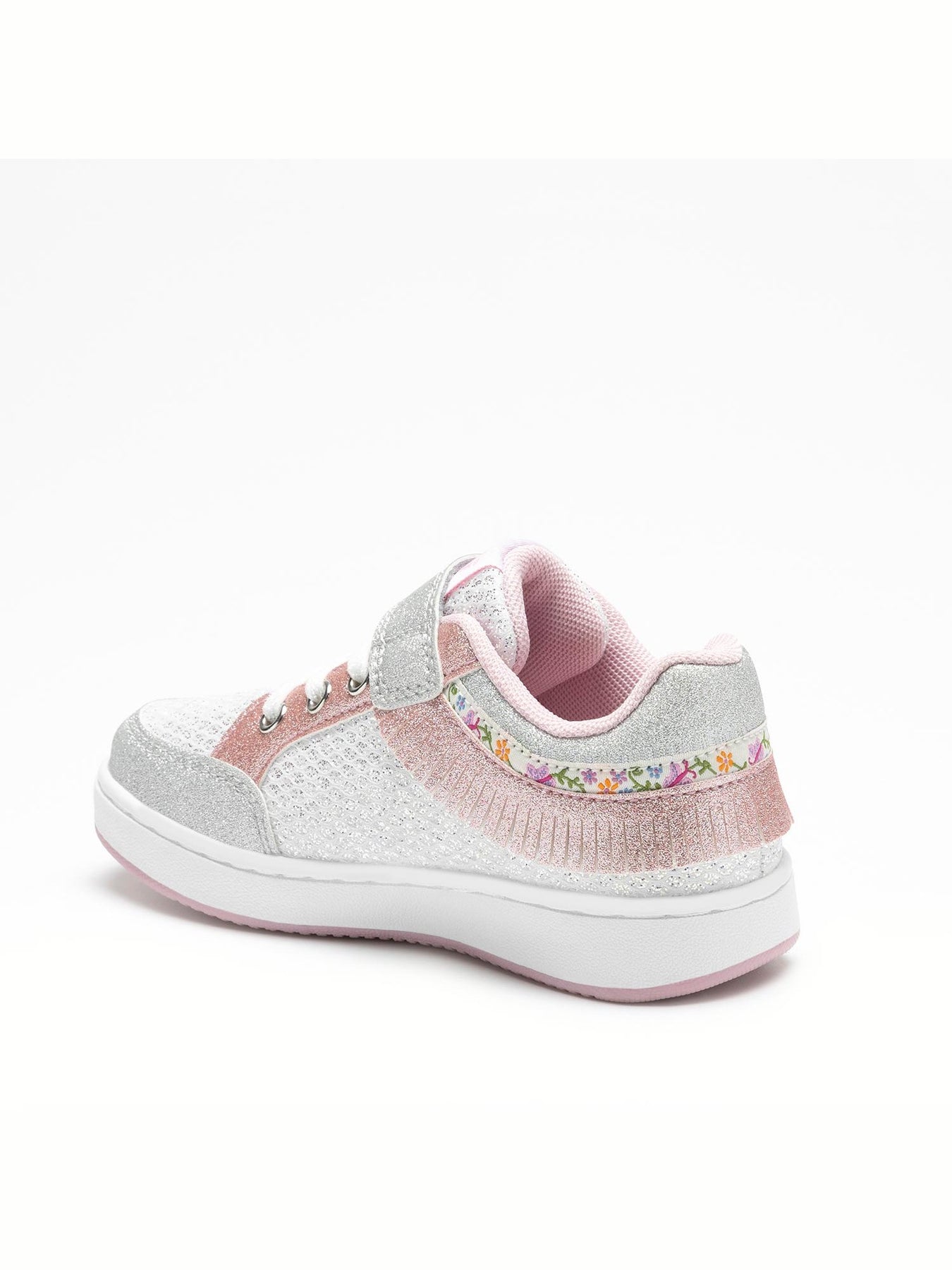 Decorata con frange scintillanti, questa scarpa offre un tocco di stile unico e accattivante. Il sistema di chiusura a strappo assicura una calzata comoda e veloce, ideale per le giornate impegnative. La suola antiscivolo e flessibile garantisce sicurezza e massimo comfort ad ogni passo.