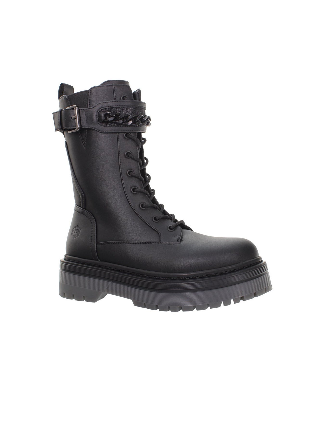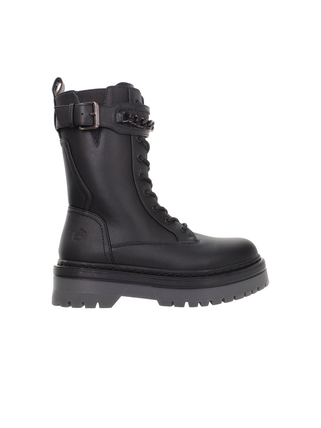 LUMBERJACK Elyse Anfibi Tacco Medio Donna - 102230225 Nero Anfibi donna in pelle nera con allacciatura frontale, fibbia alla caviglia e tacco medio con suola carrarmato.