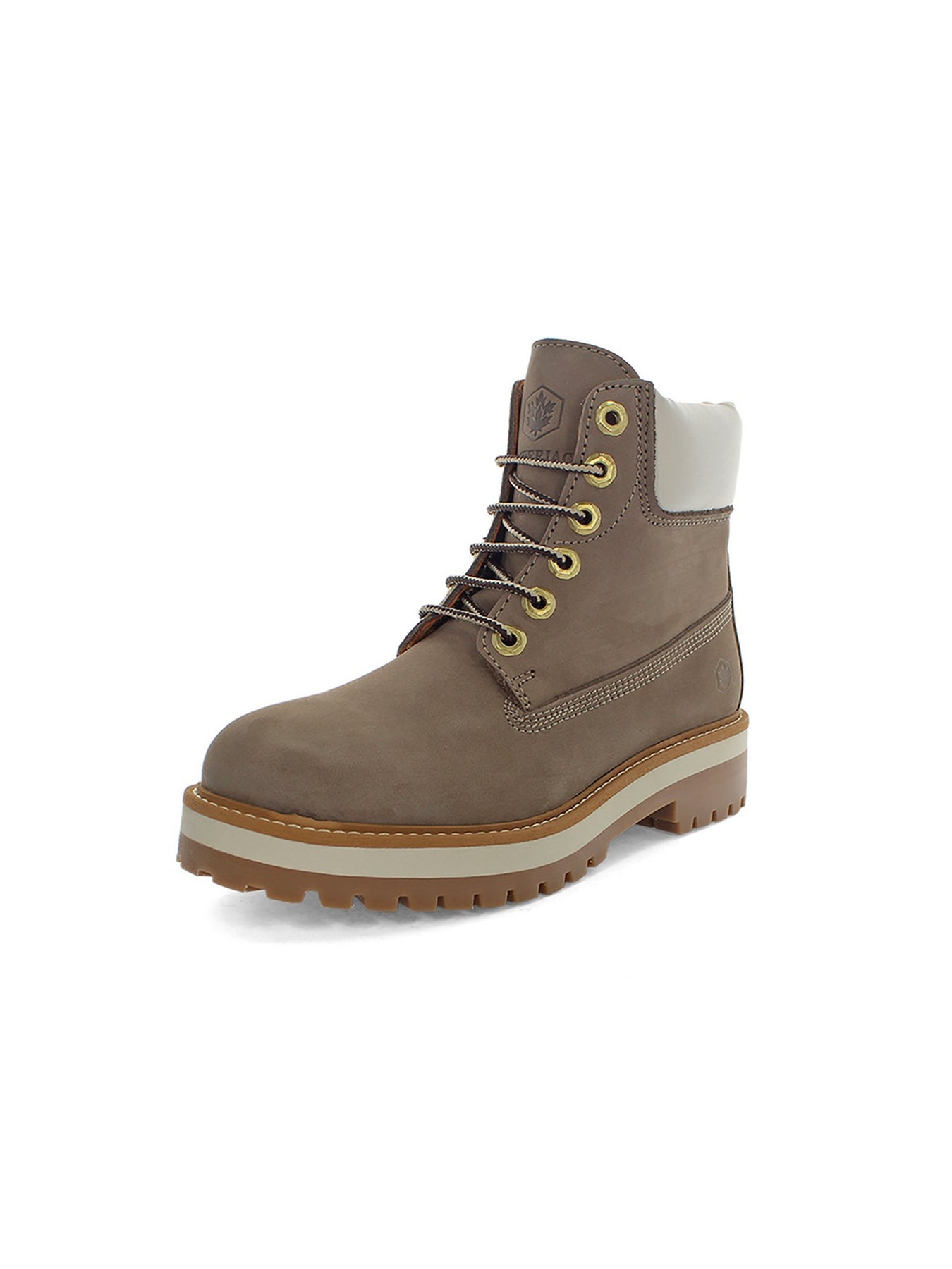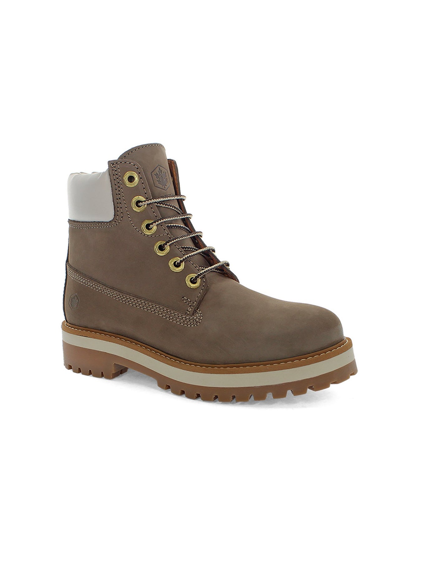 Lo scarponcino Lumberjack Kristy è un classico intramontabile che unisce robustezza e stile casual. Realizzato in pelle scamosciata tortora di alta qualità, si distingue per il design essenziale e il collo imbottito bianco che dona contrasto e comfort extra alla caviglia.