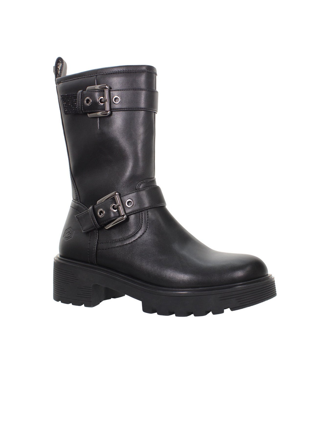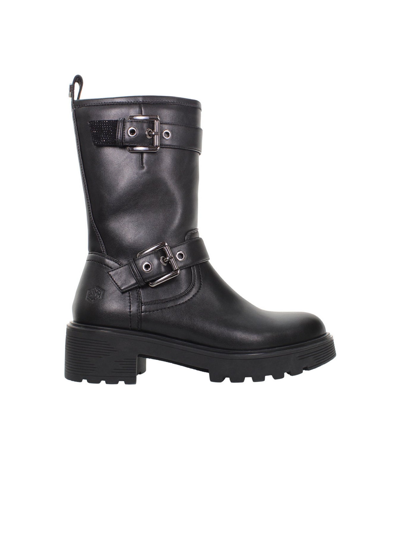 LUMBERJACK Ramone Stivale Tacco Medio Donna - 102230227 Nero Stivale donna in pelle nera con fibbie decorative e suola carrarmato, robusto e trendy.