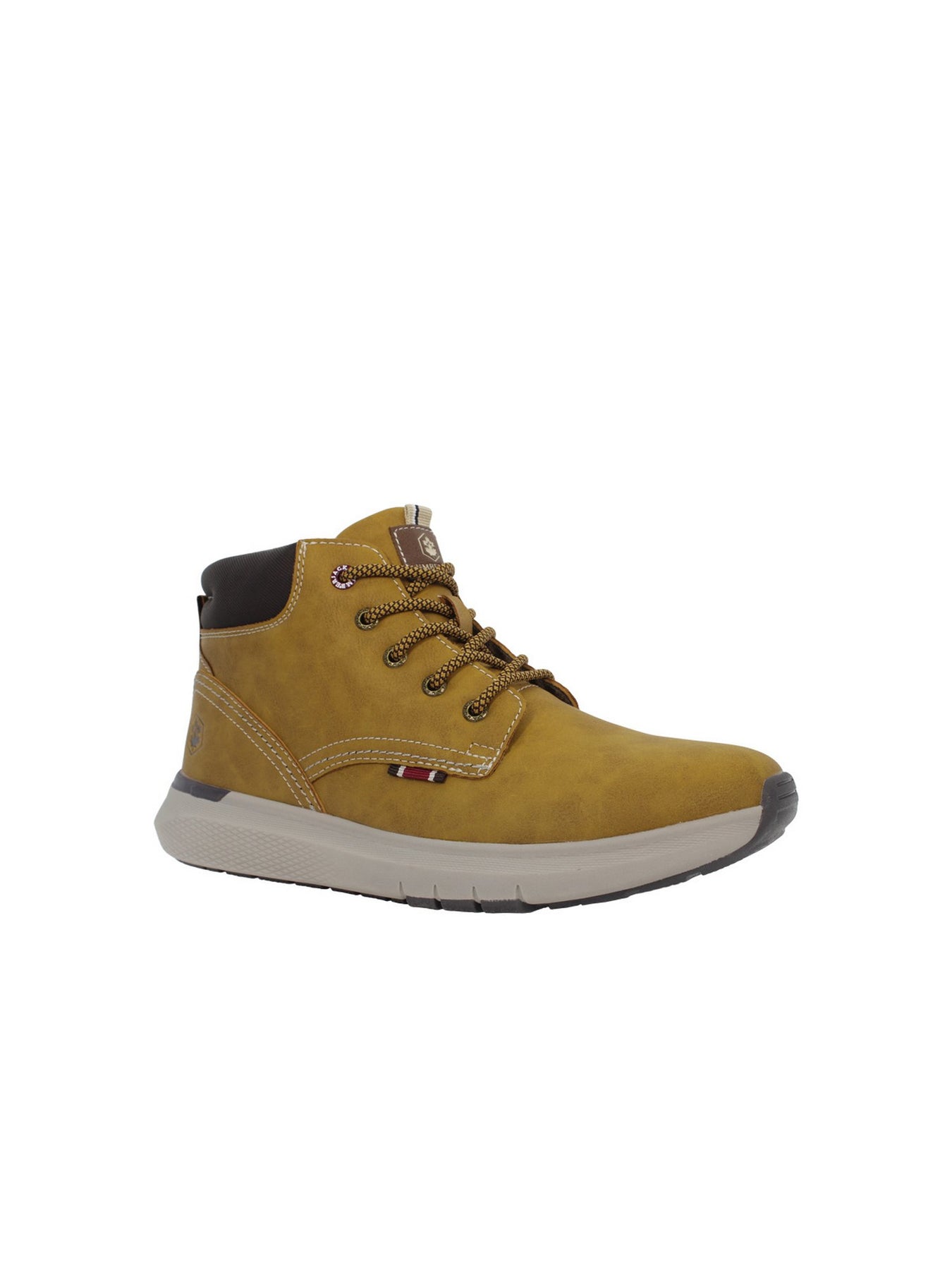 Lo scarponcino Lumberjack Neil 102217646 è pensato per chi cerca una calzatura dinamica, comoda e dallo stile contemporaneo. Realizzato in pelle scamosciata gialla di alta qualità, è arricchito da cuciture a vista e collo imbottito marrone che garantisce sostegno e comfort alla caviglia.